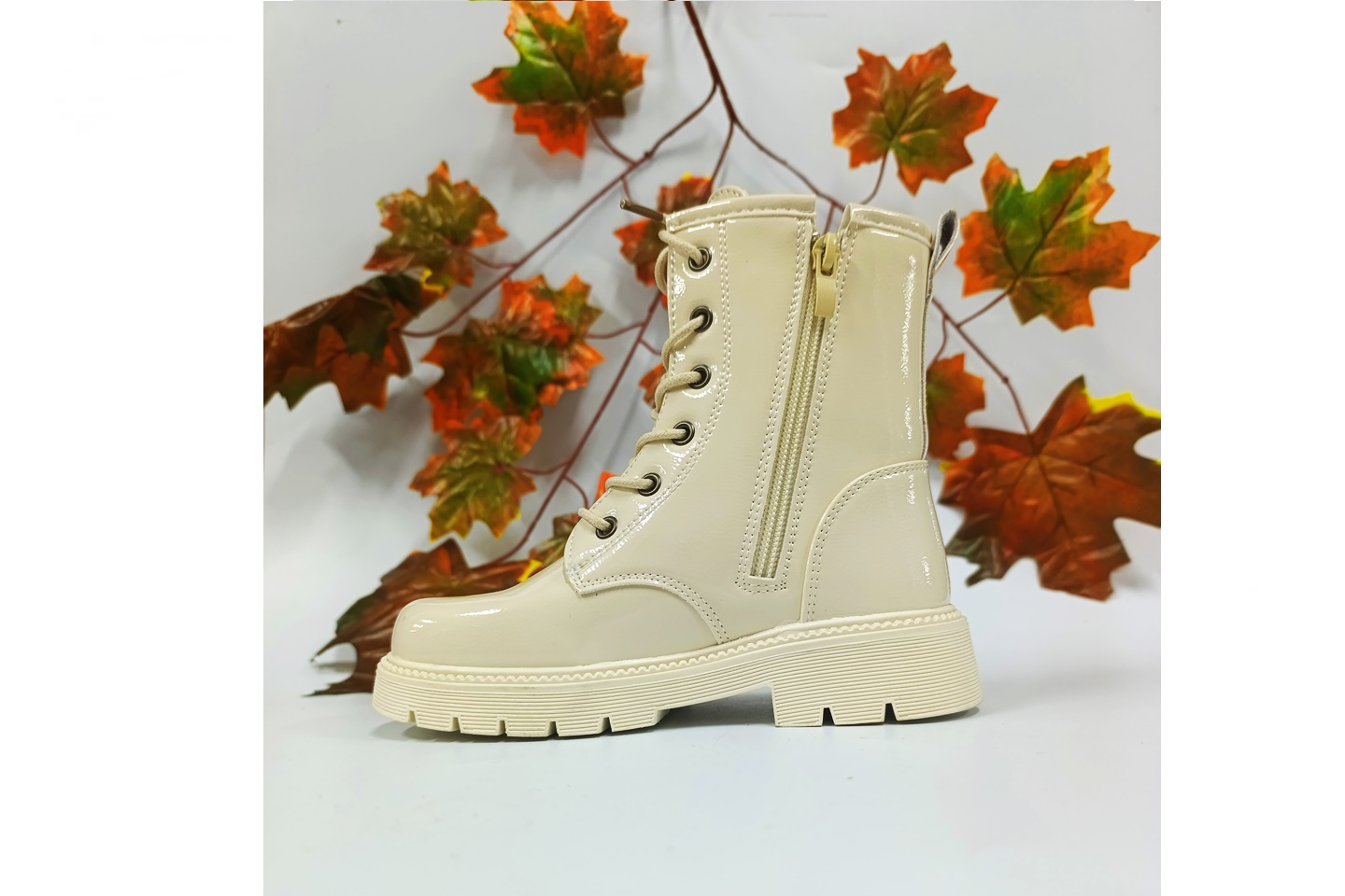 bota de criança verniz com flor e urso