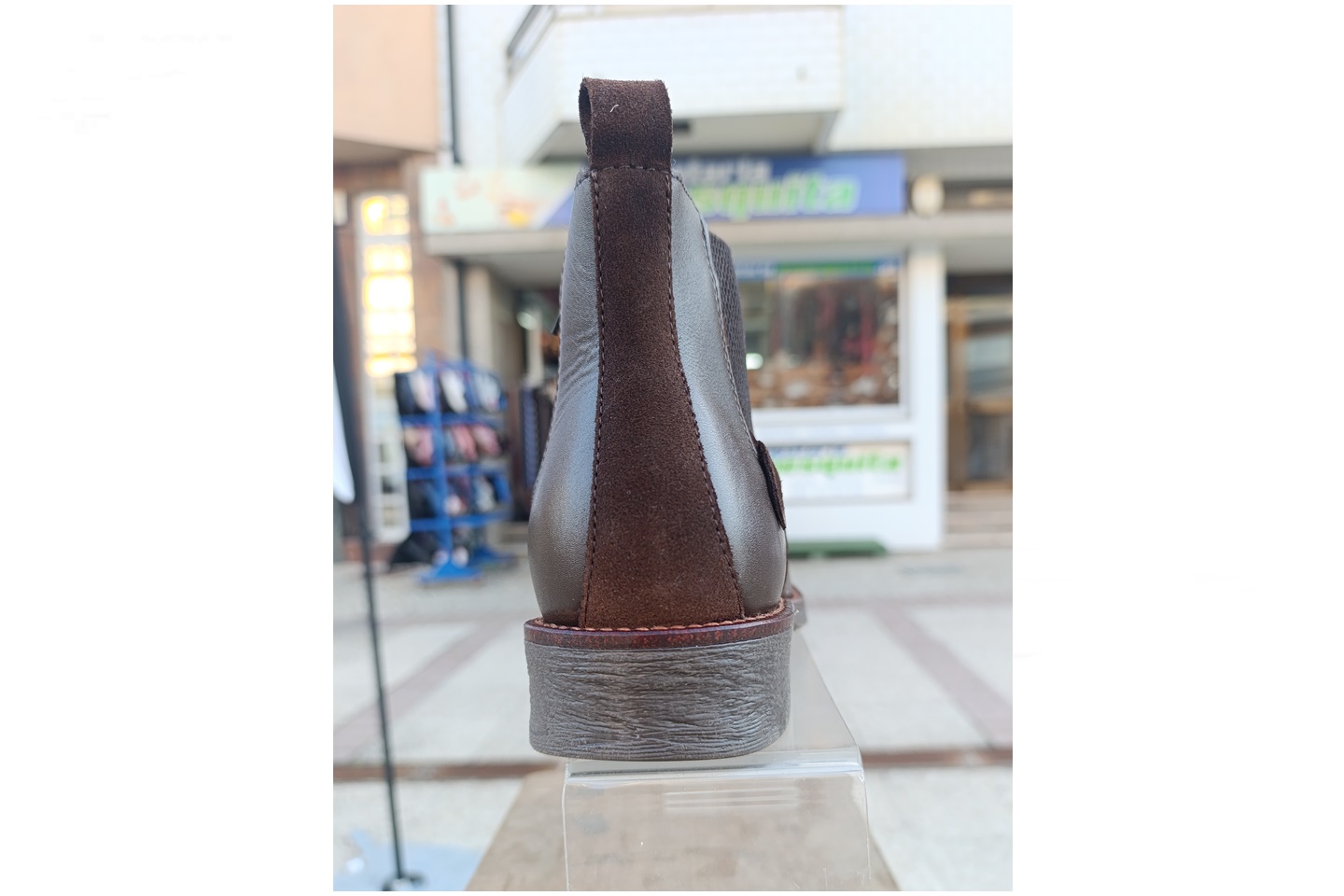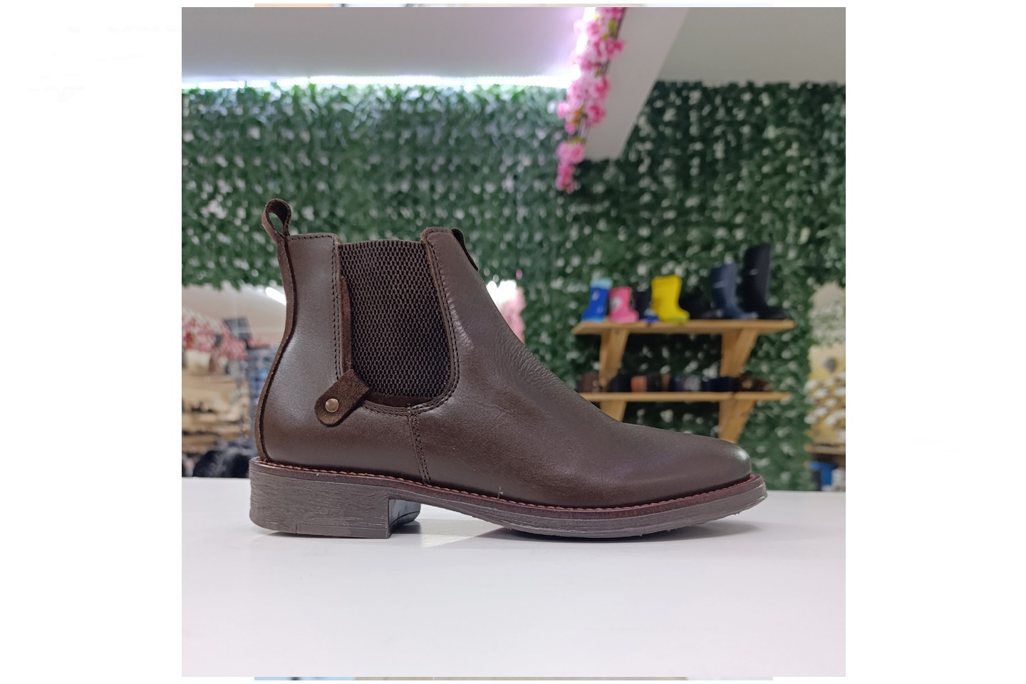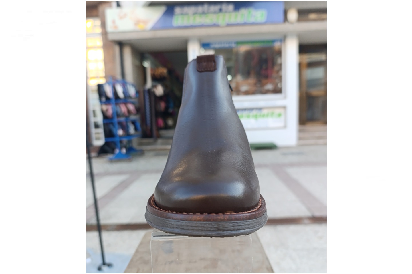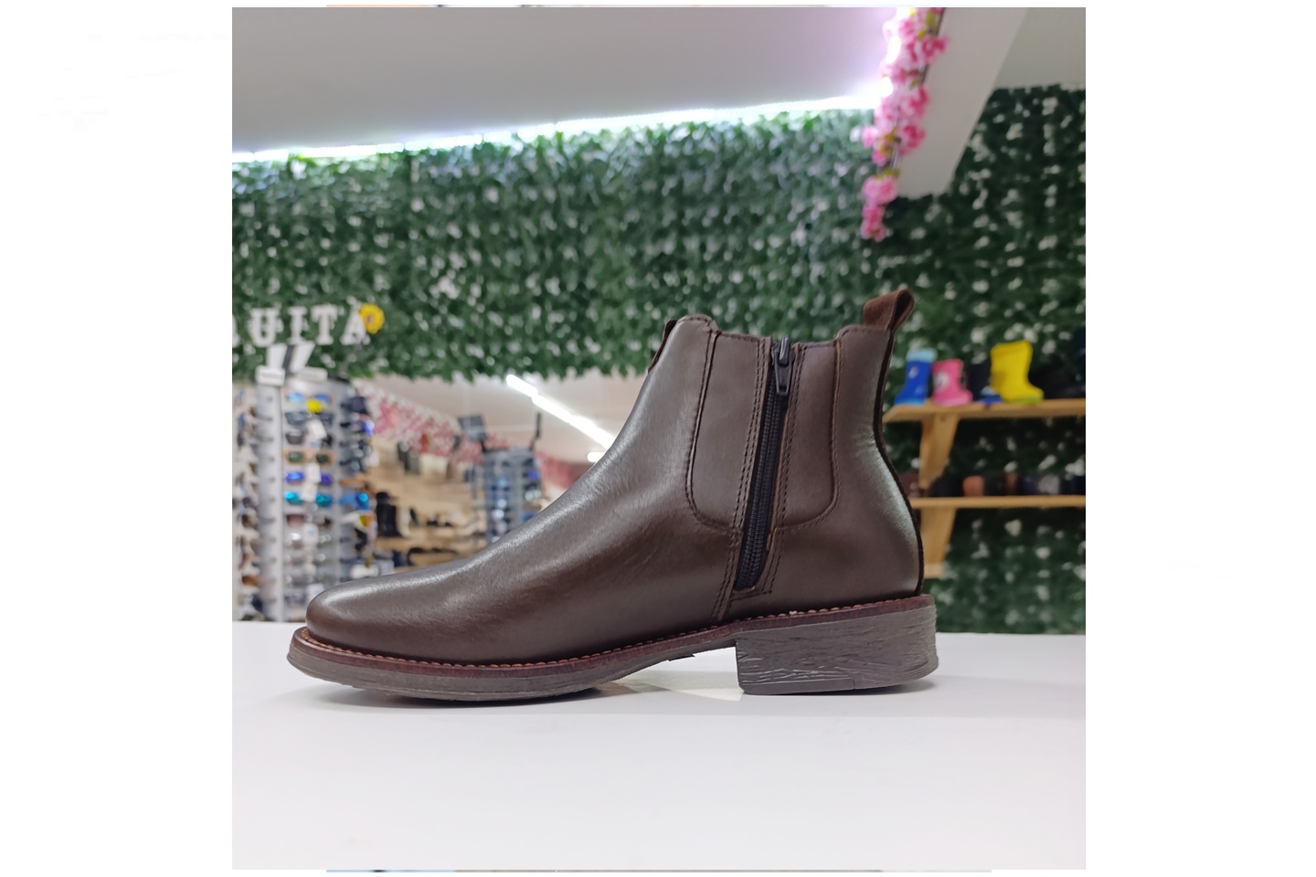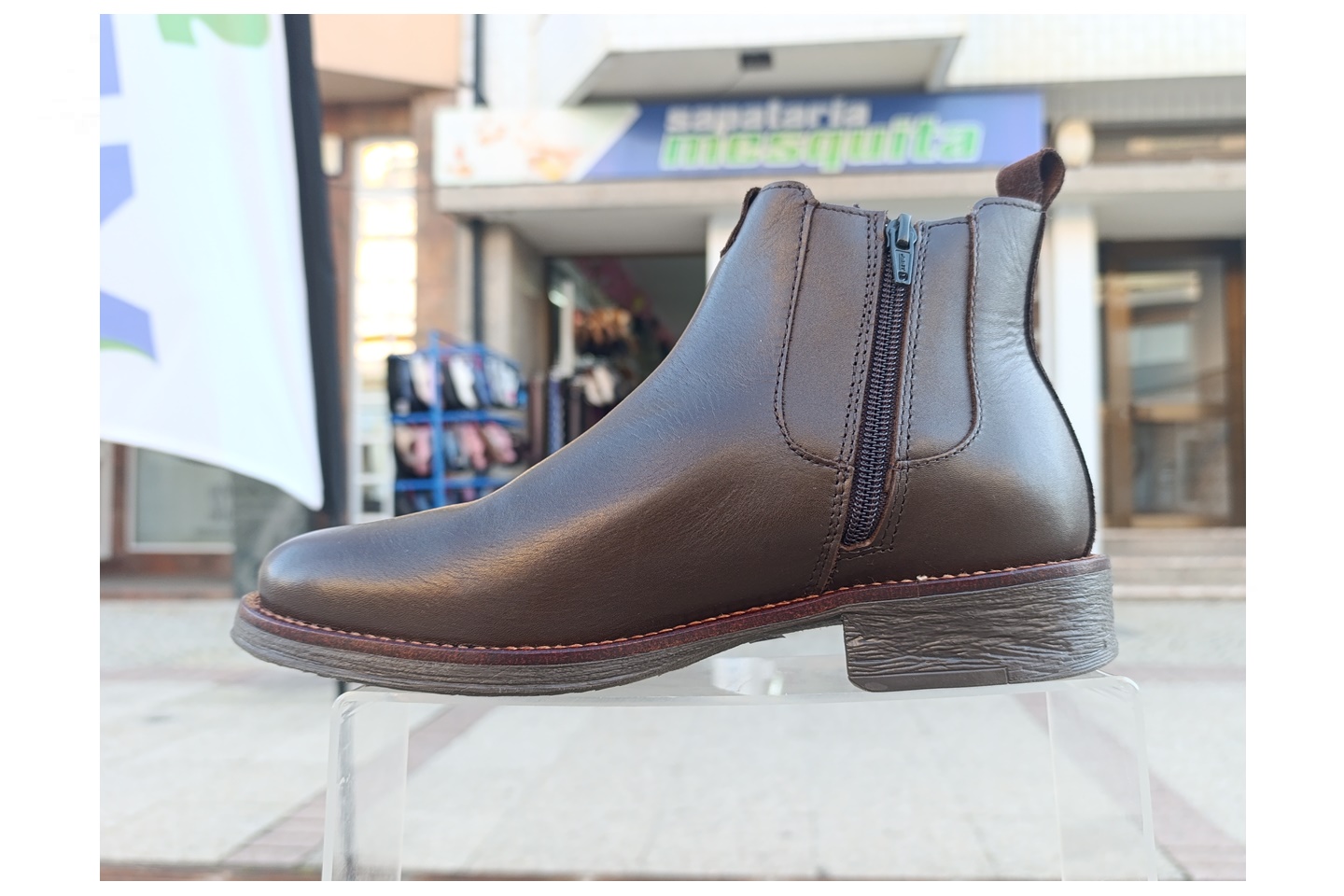 Bota de homem com elastico e fecho em pele cor castanho