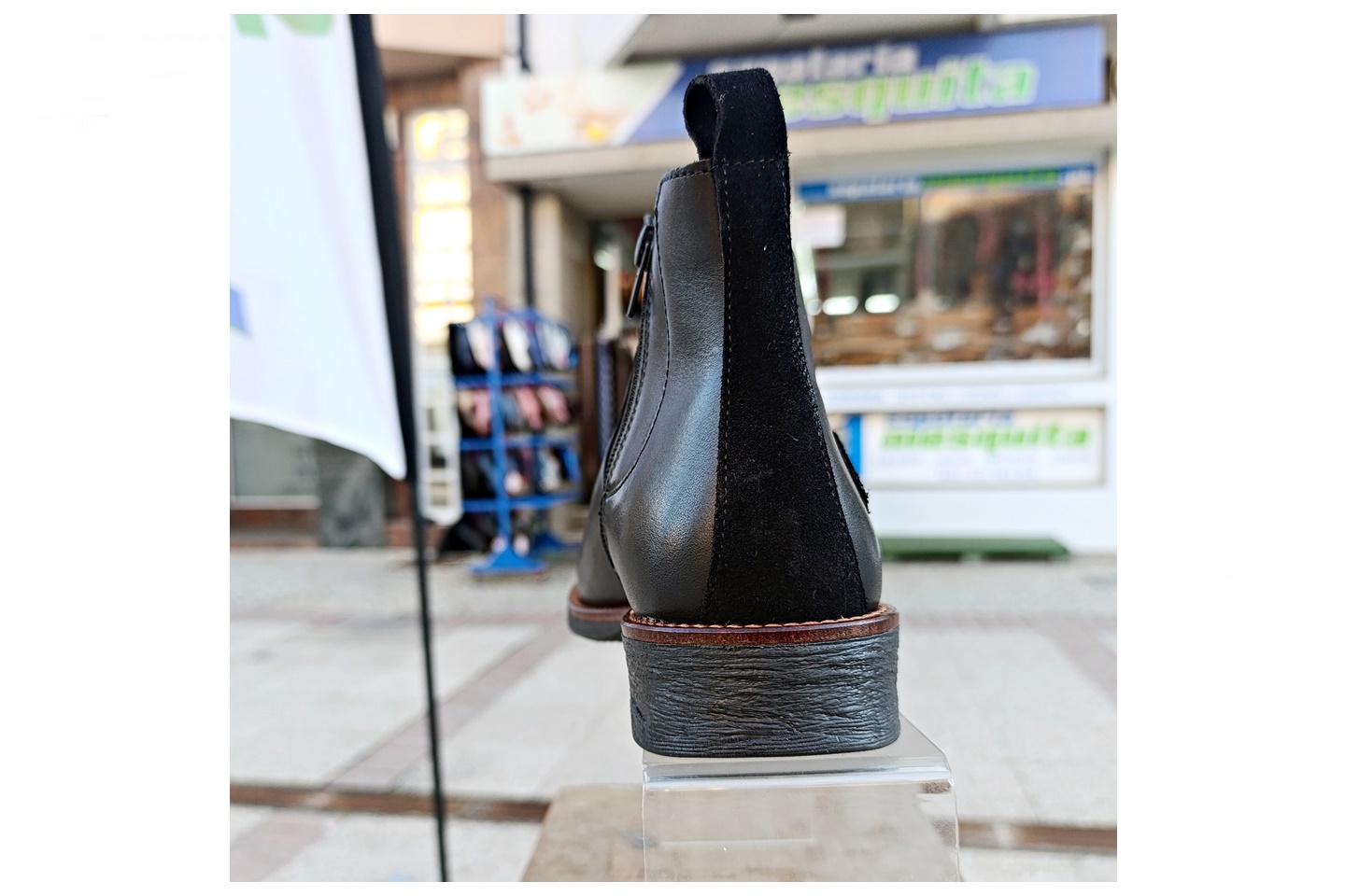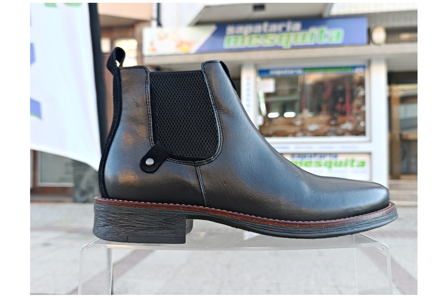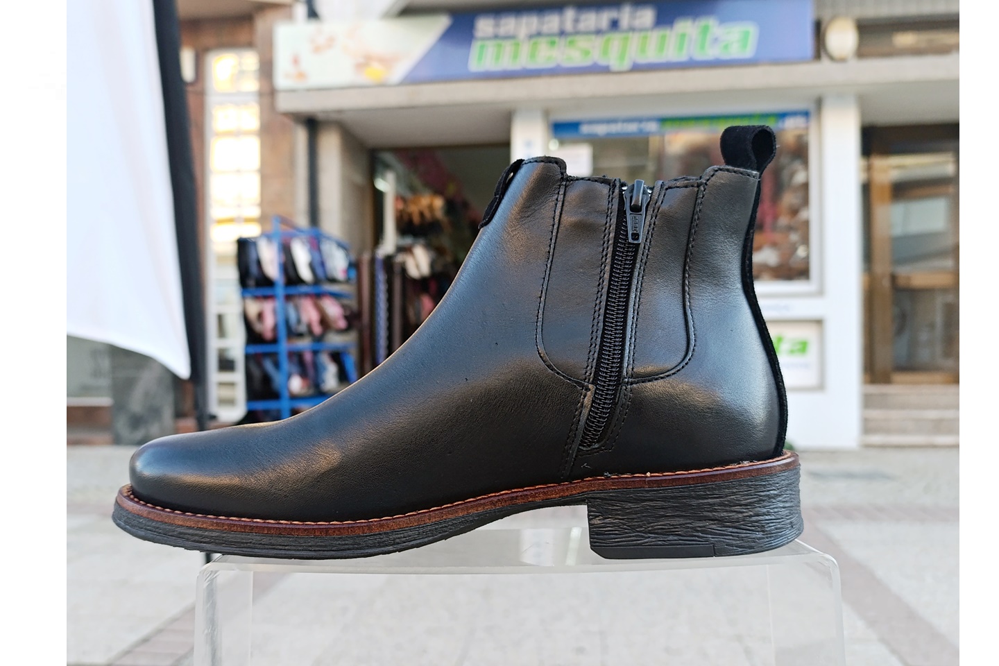 Bota de homem com elastico e fecho em pele cor preto