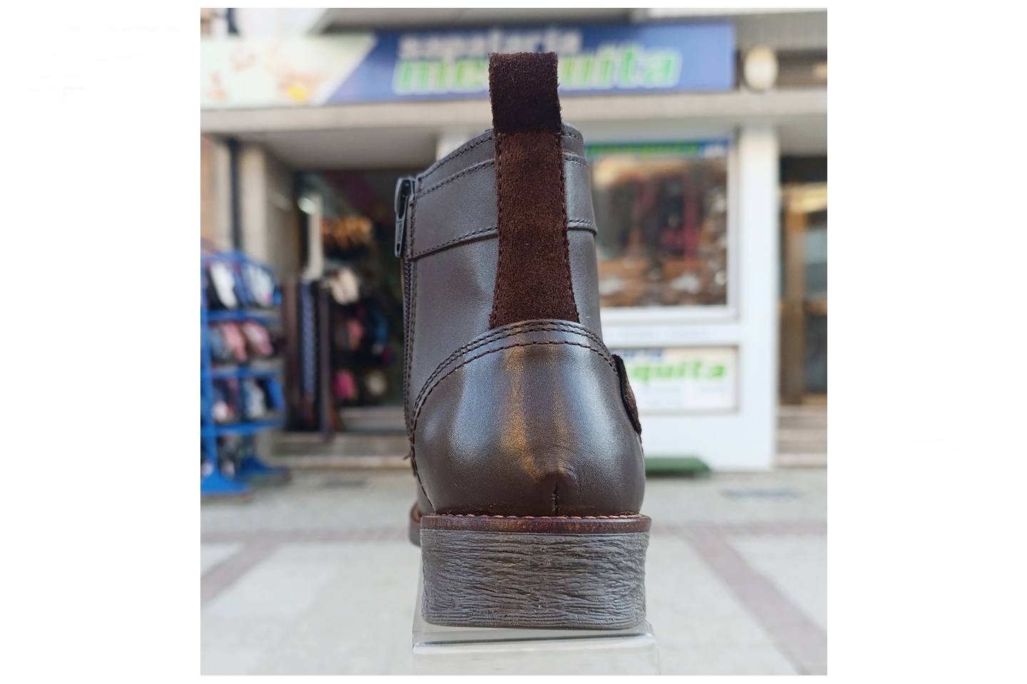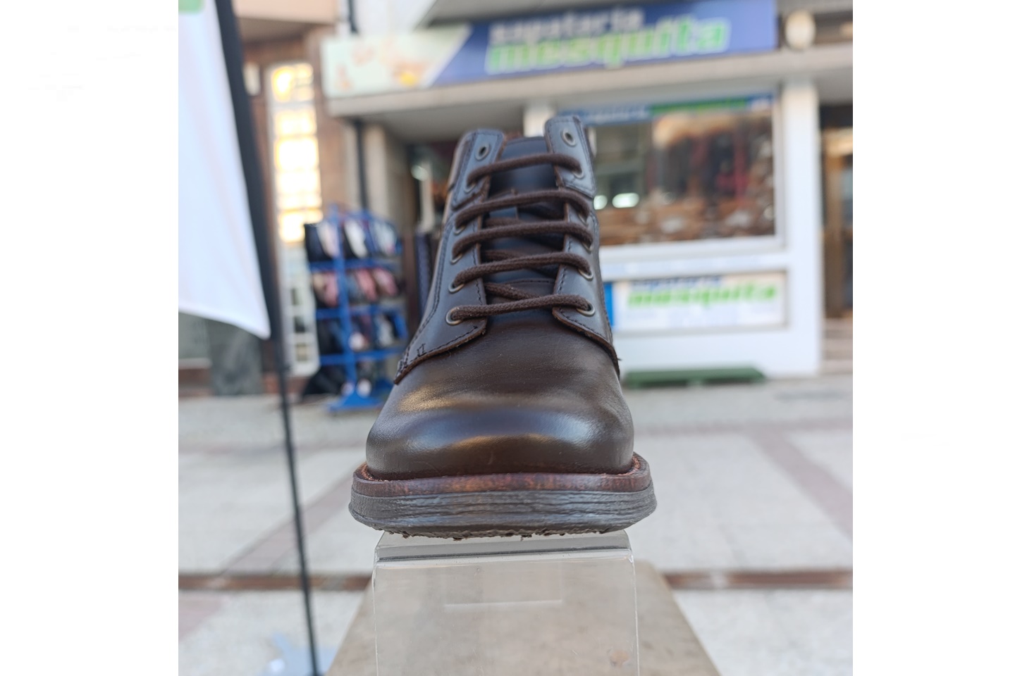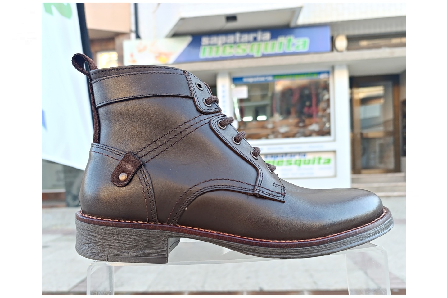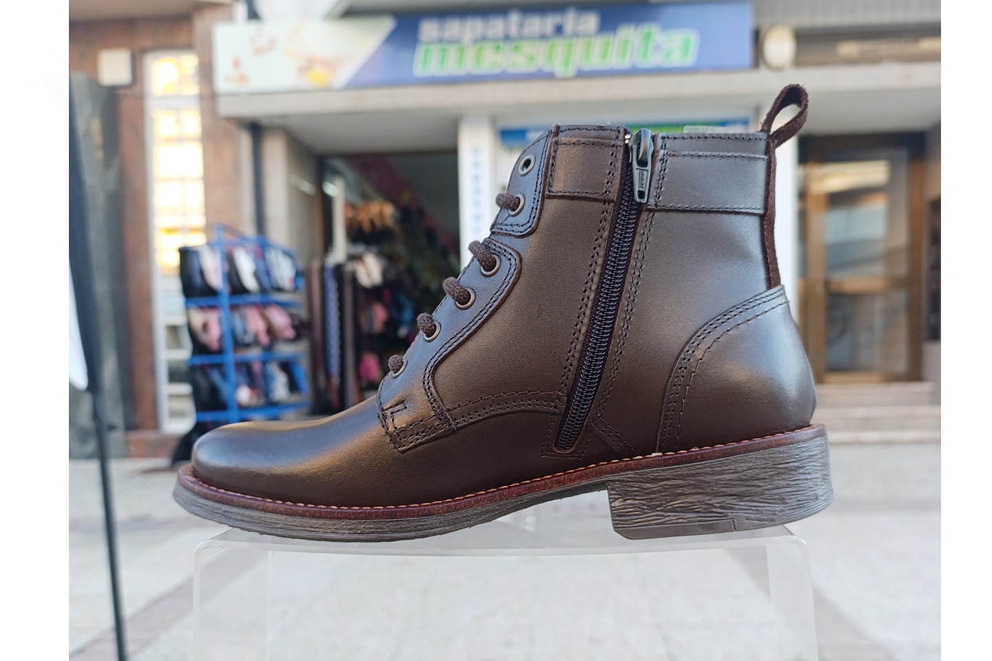 Bota de homem MV com atacadores e fecho em pele cor castanho
