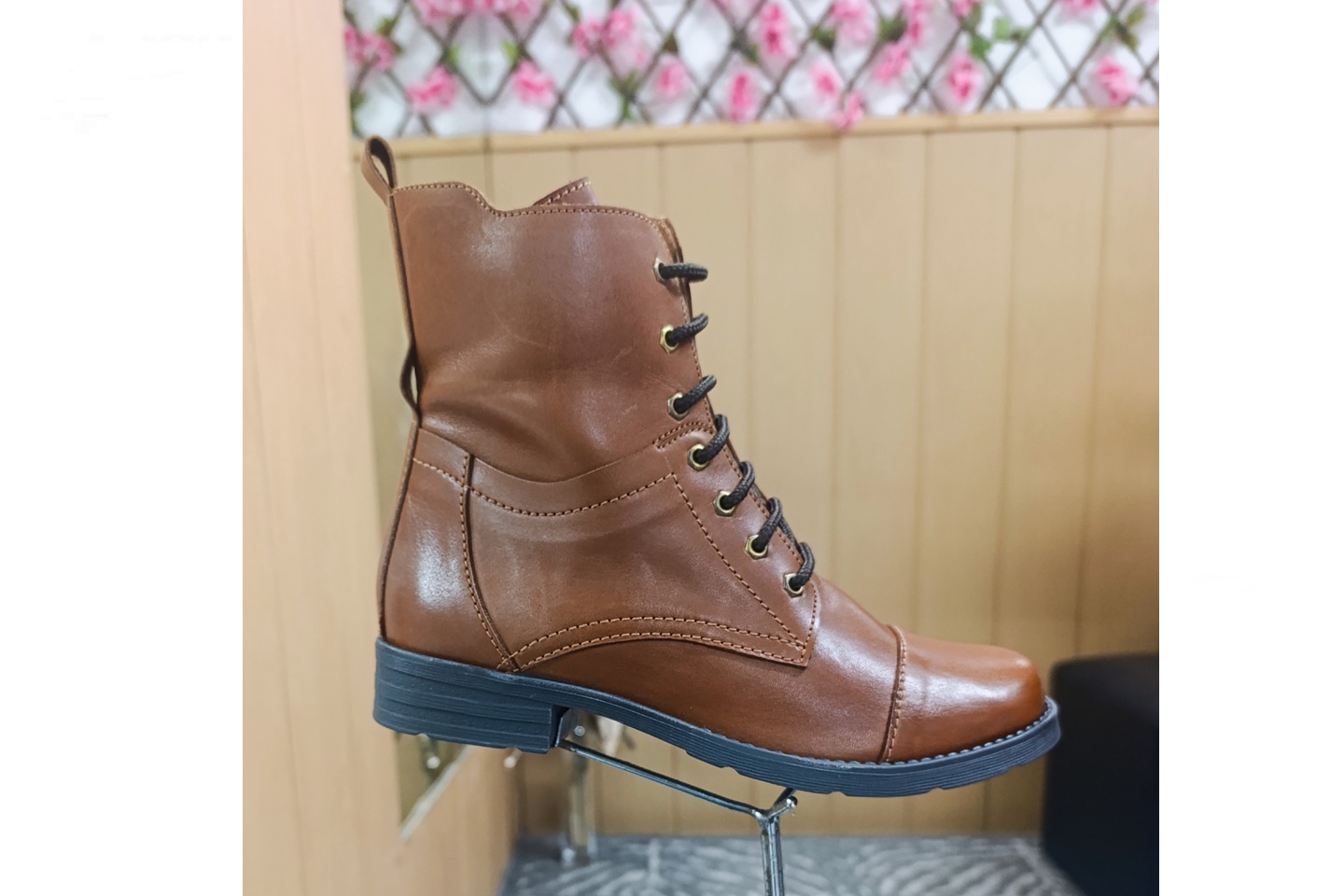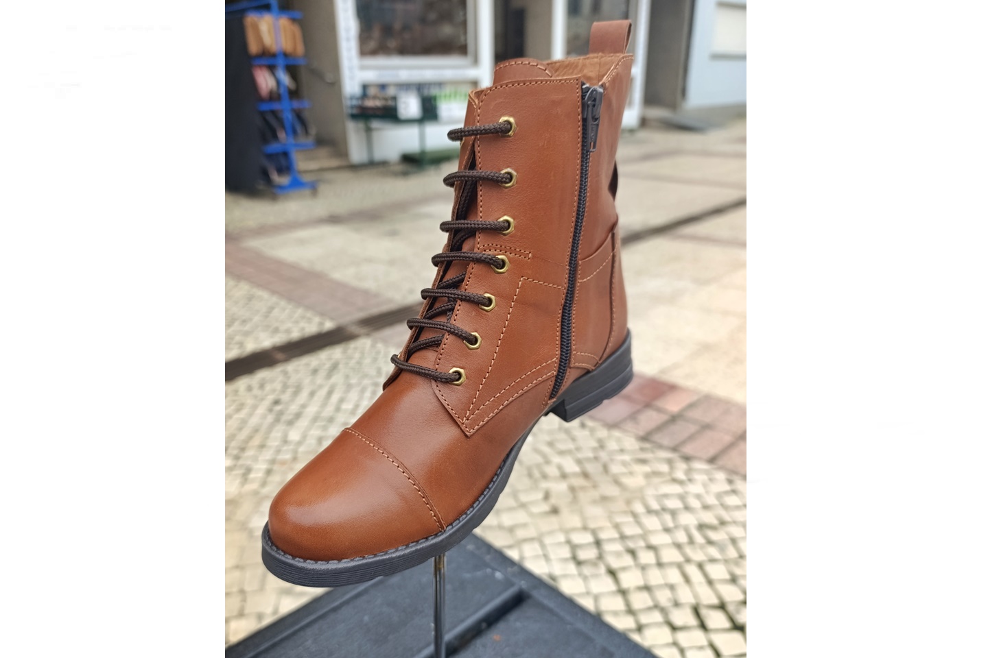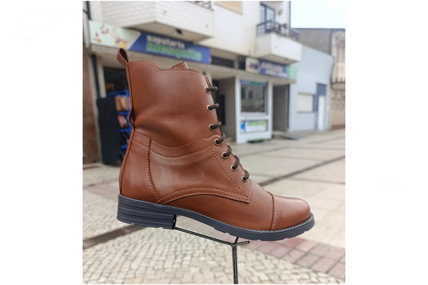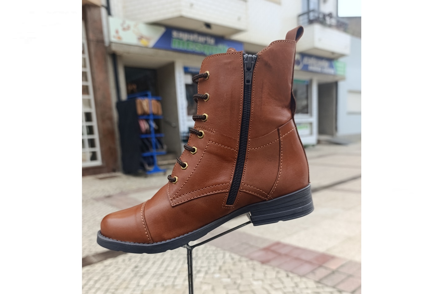 bota de senhora 2202 com atacadores e fecho em pele camel