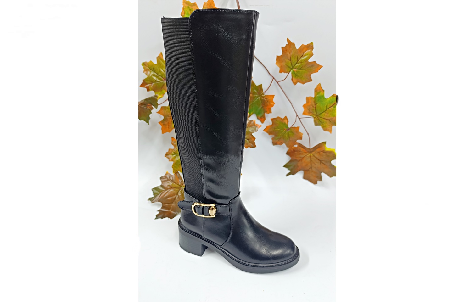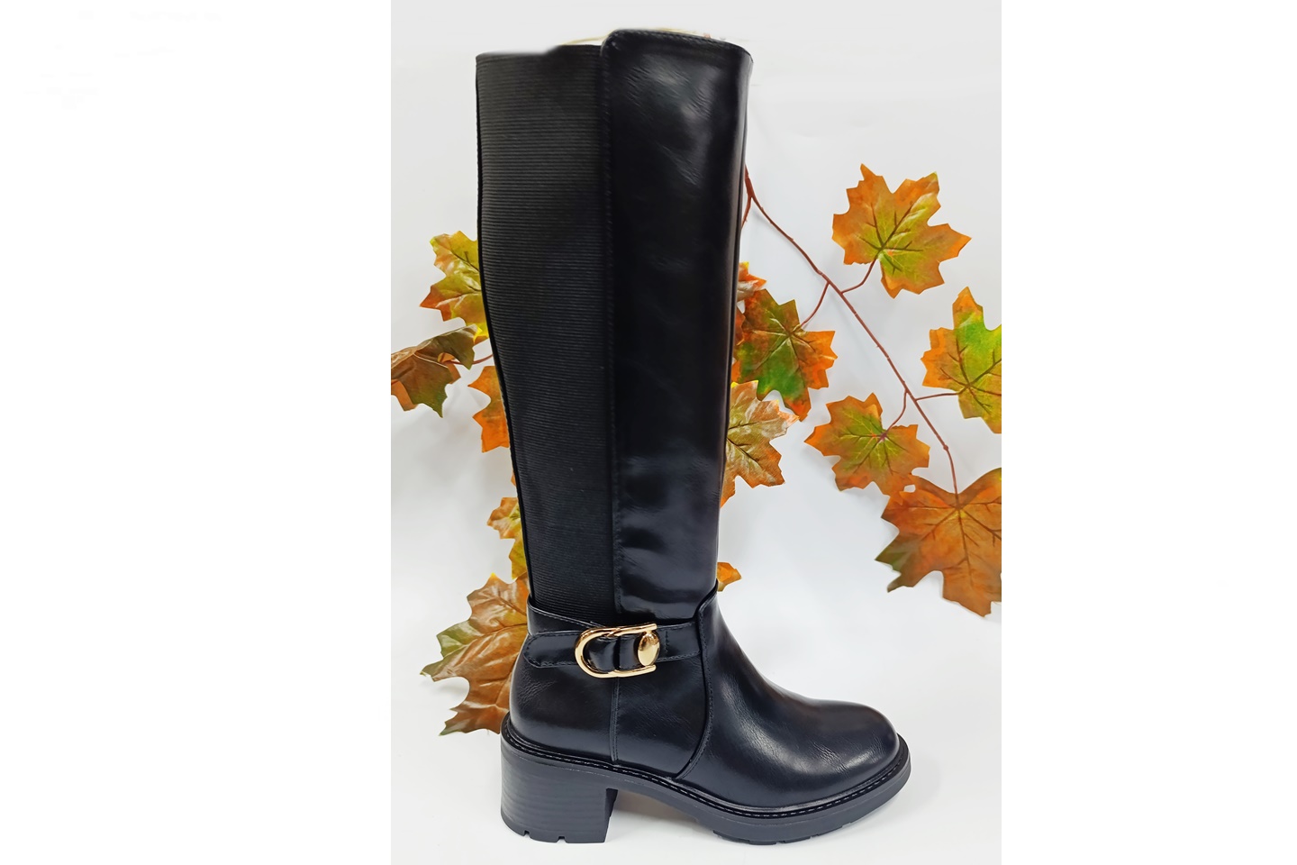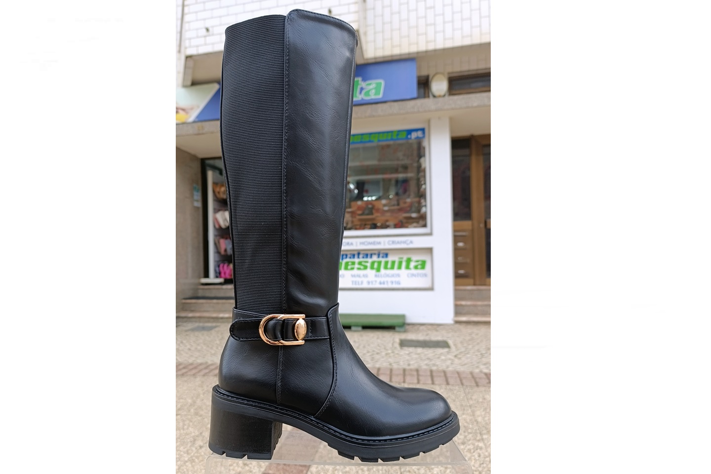 bota de senhora cano alto com tacão quadrado cor preta