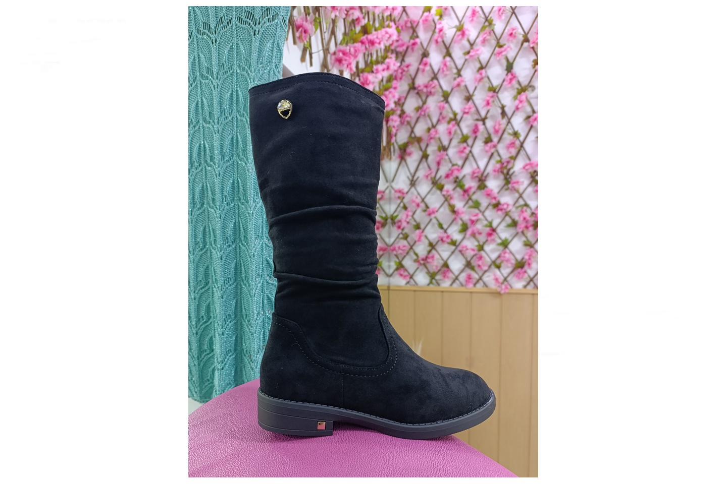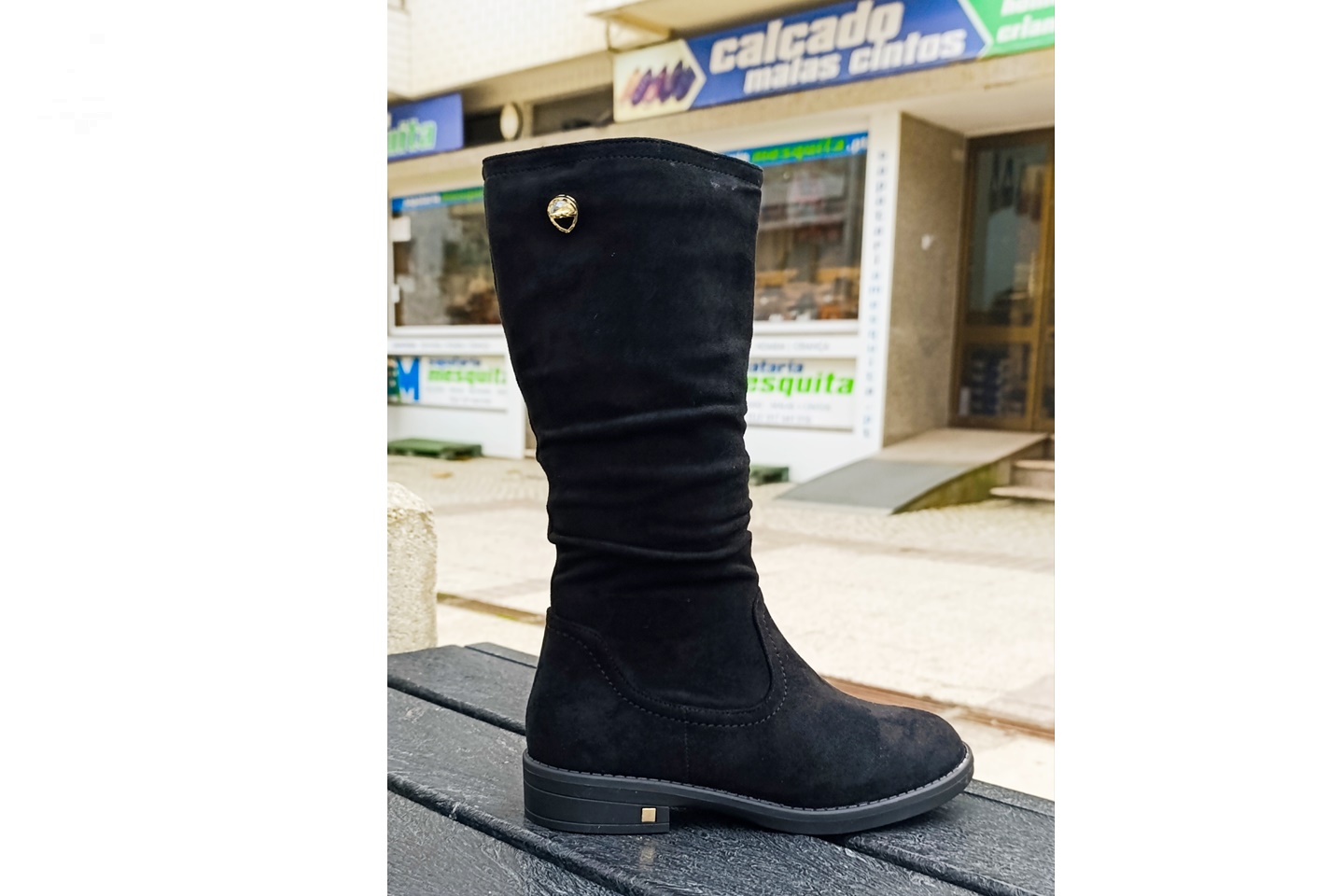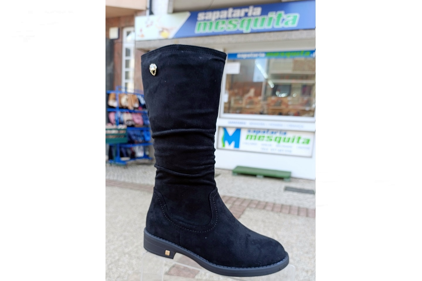 bota de senhora cano medio (28cm) camurça preta