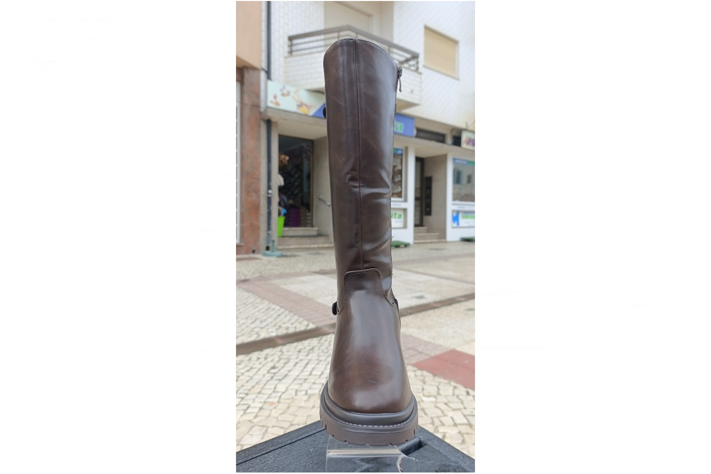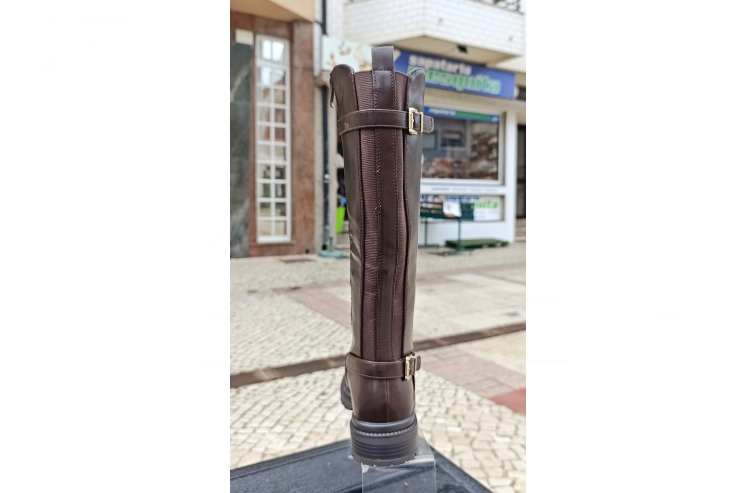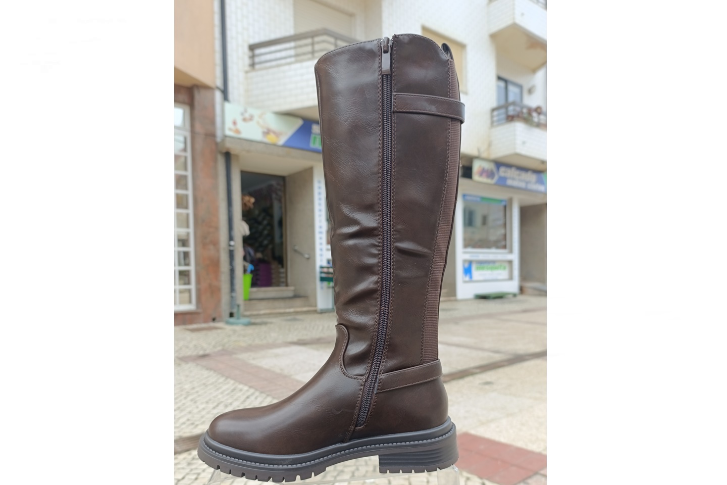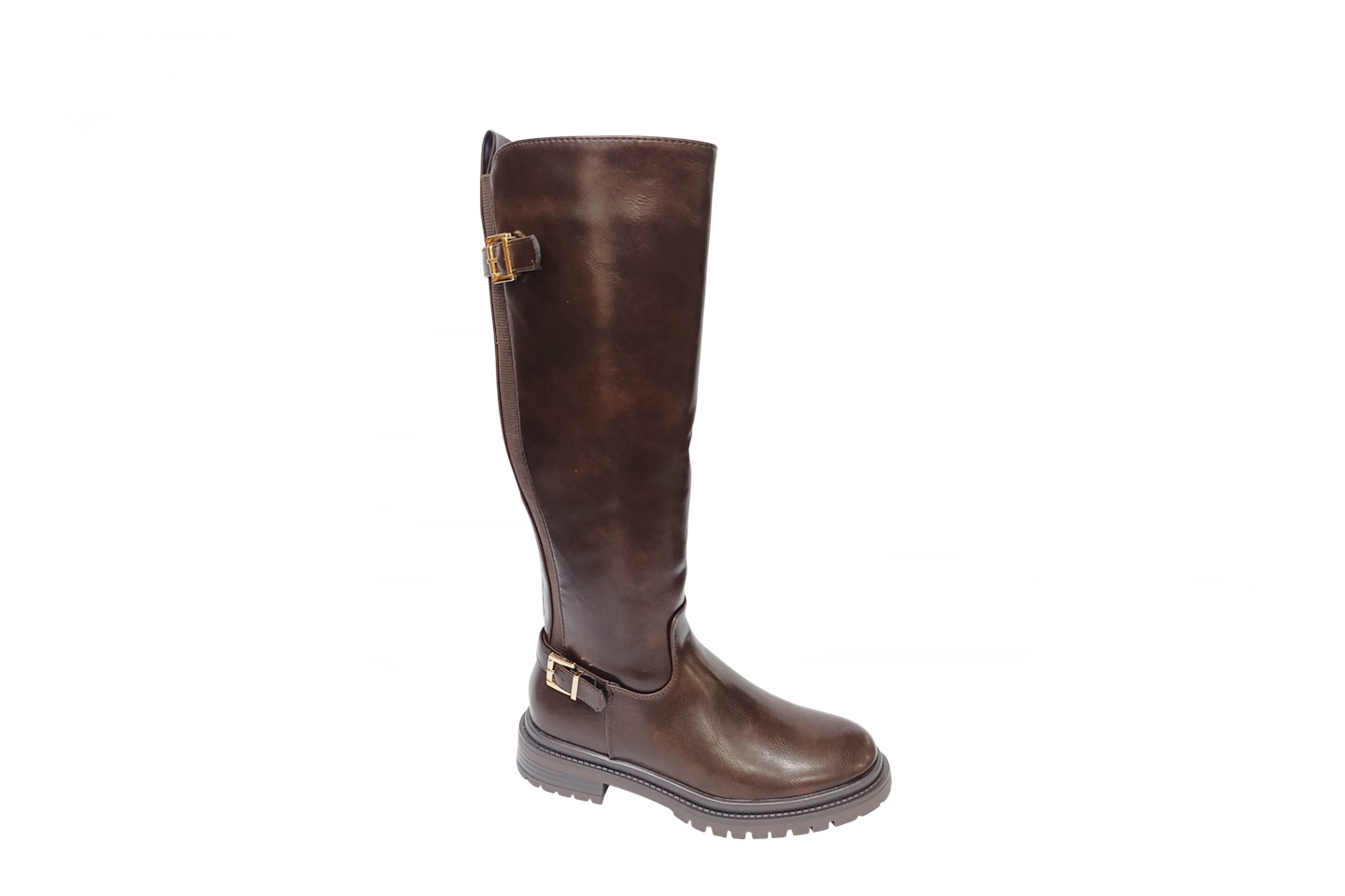 bota de senhora cavaleira cor castanha com 2 elásticos na barriga da perna