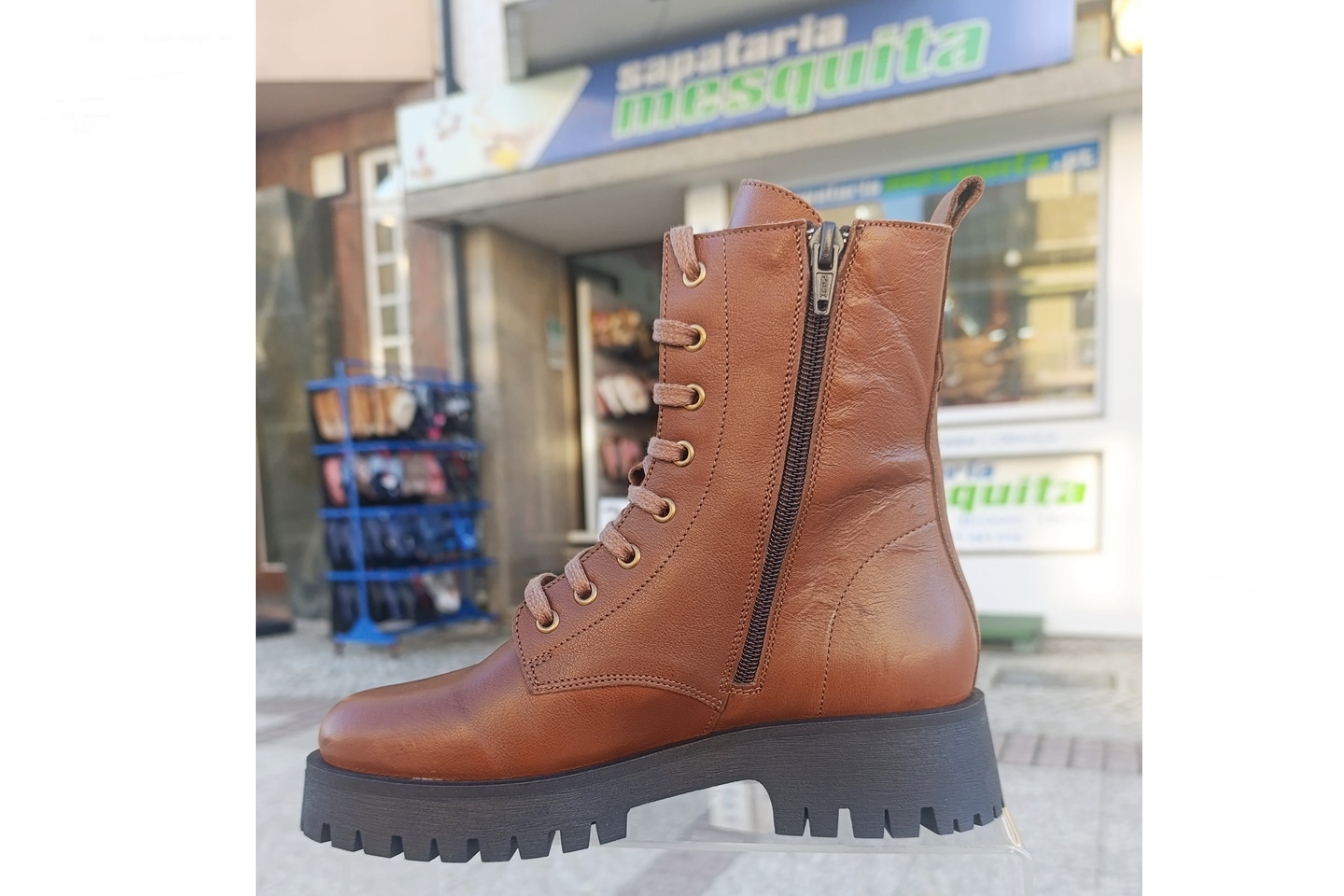 bota de senhora estilo militar cor camel marca corsi em pele