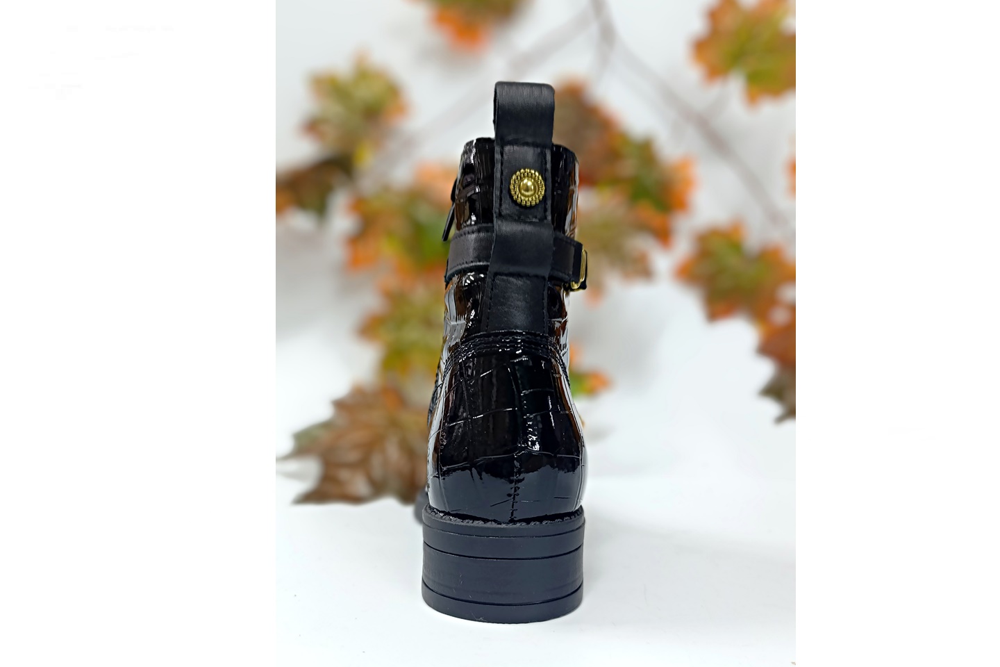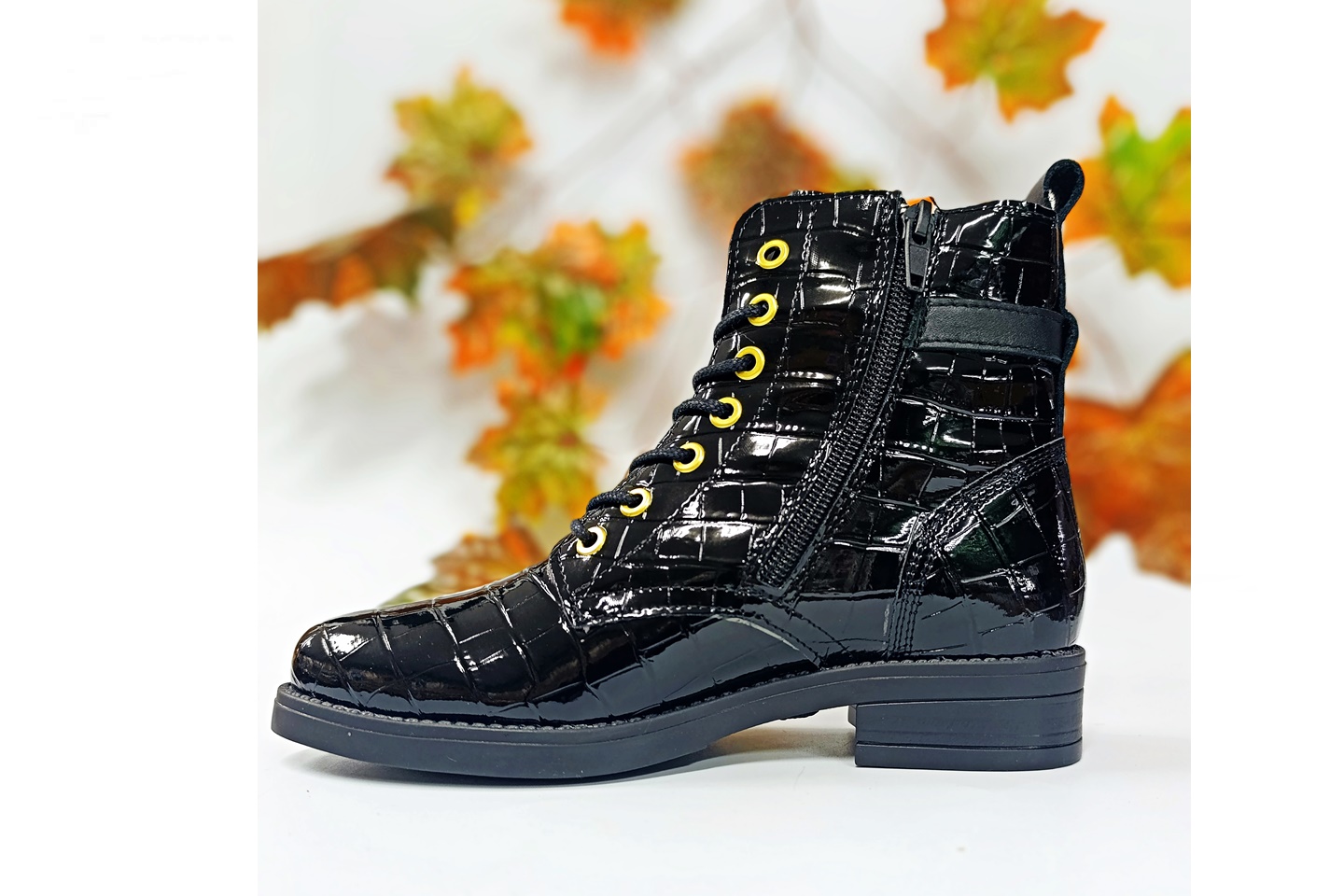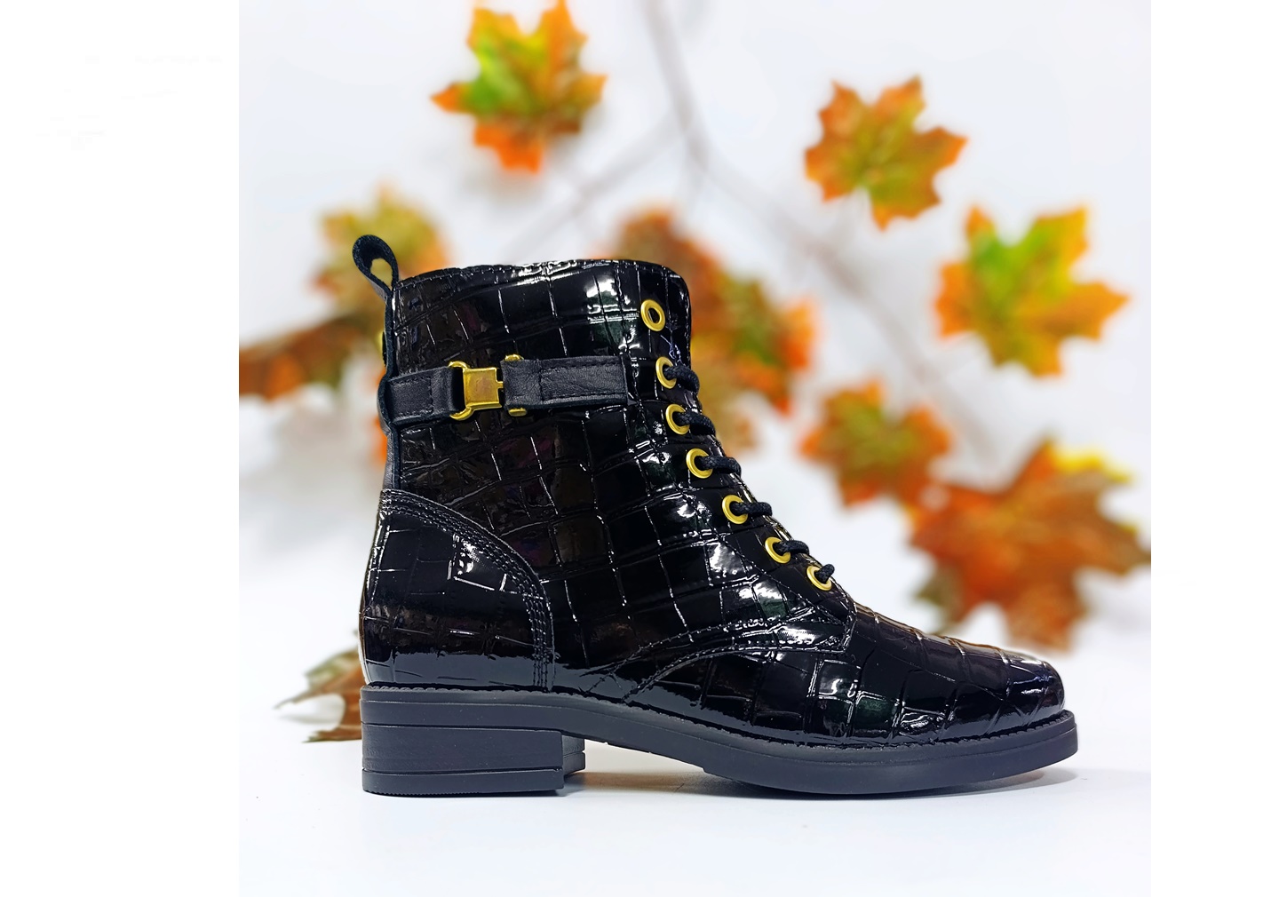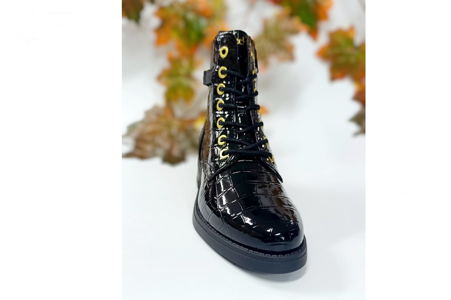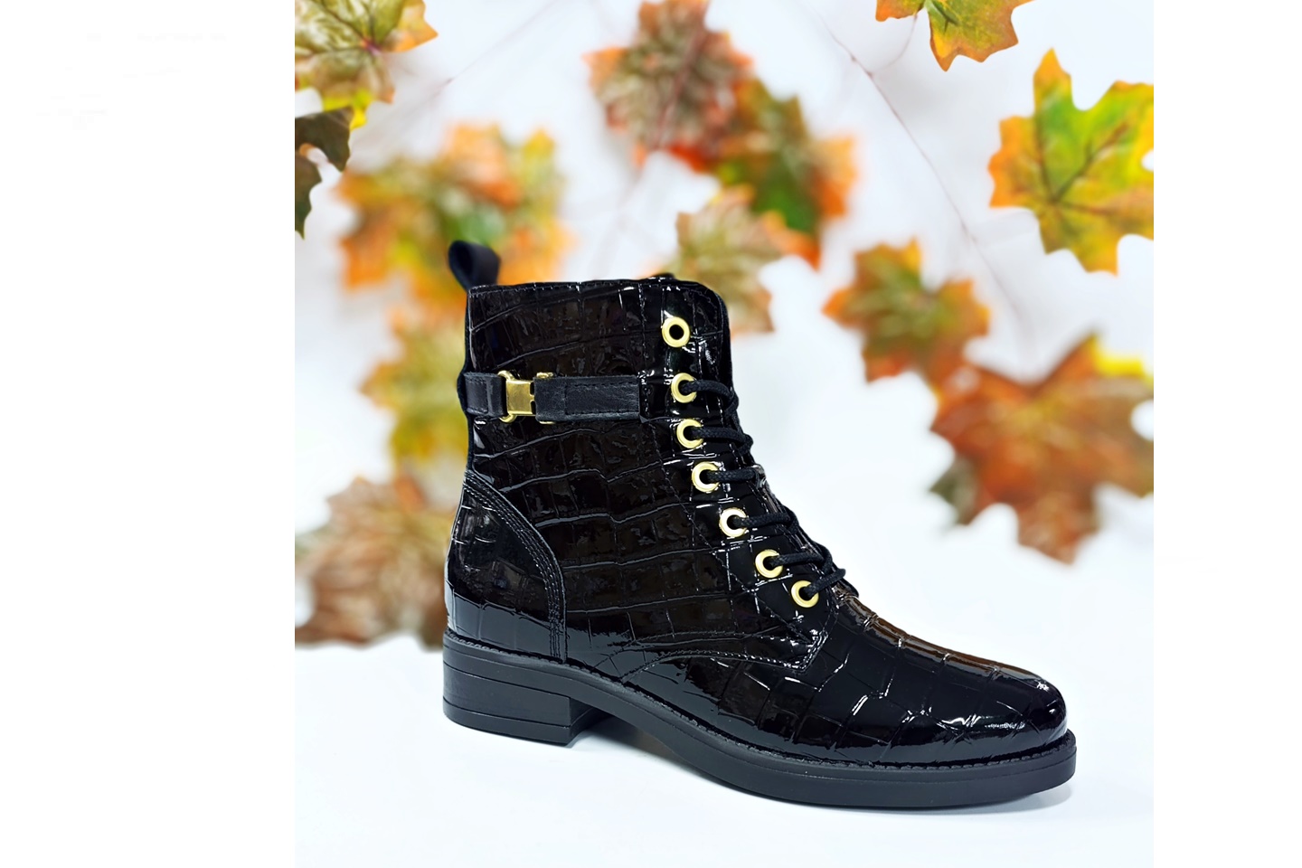 bota de senhora sacchi com atacadores e fecho verniz preta