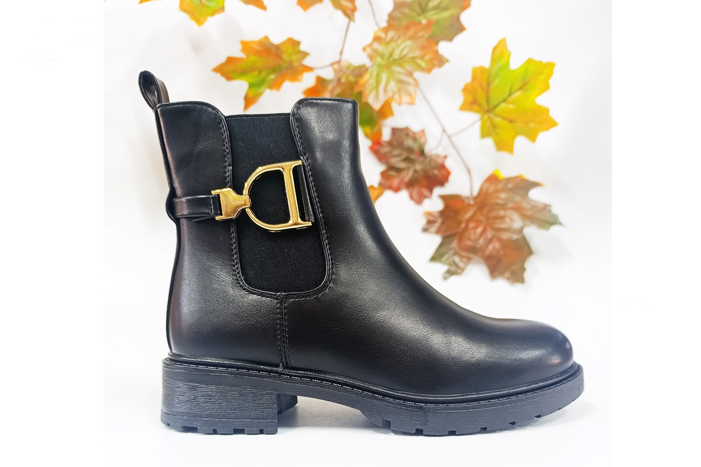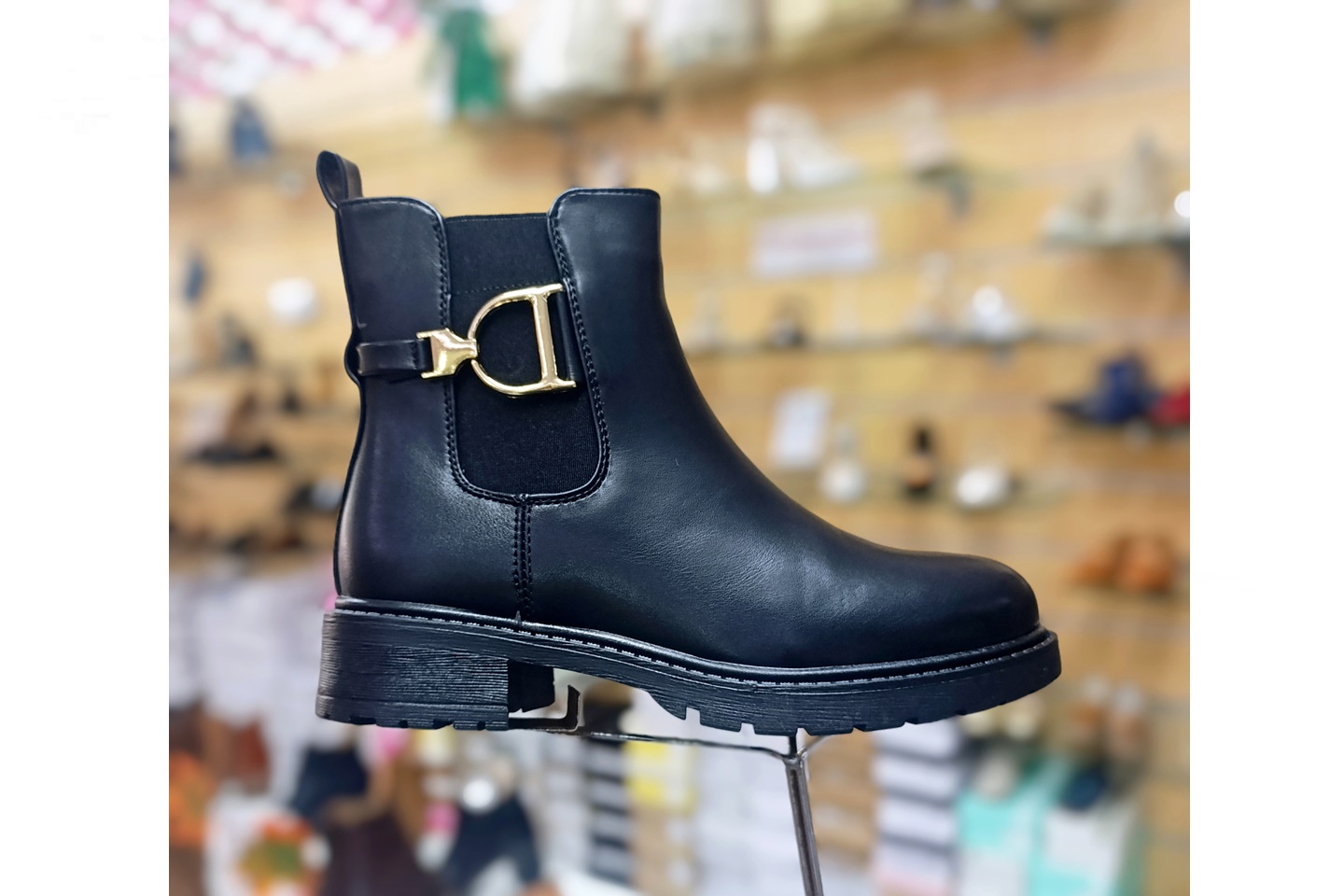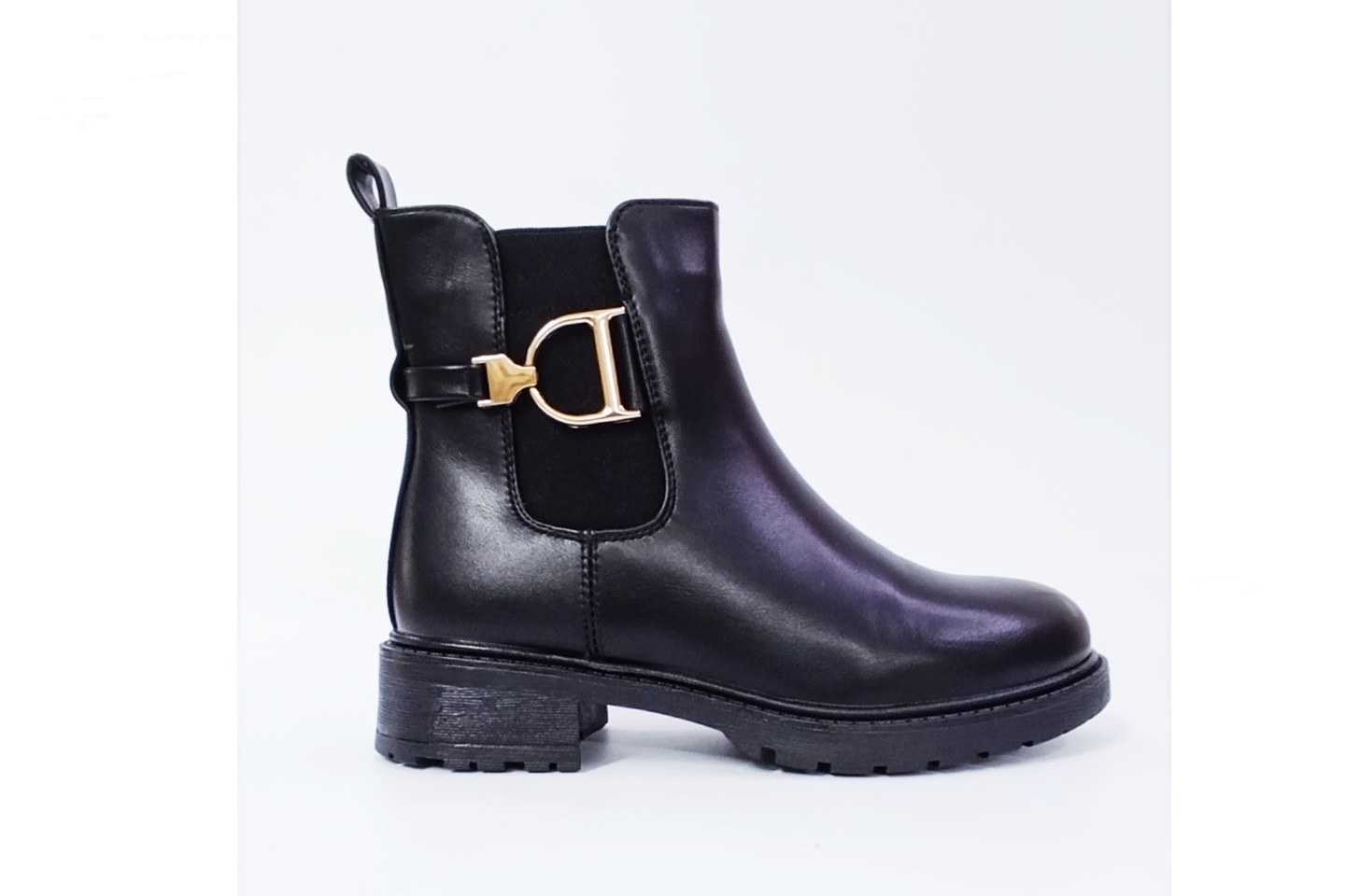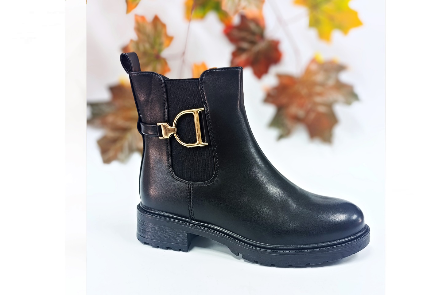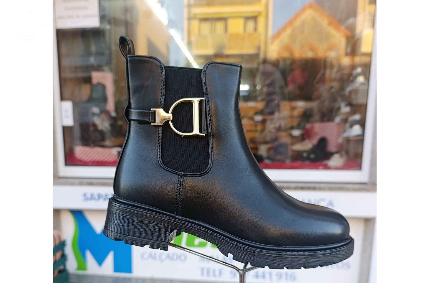 bota de senhora saltars de cano baixo com fecho e elástico cor preta