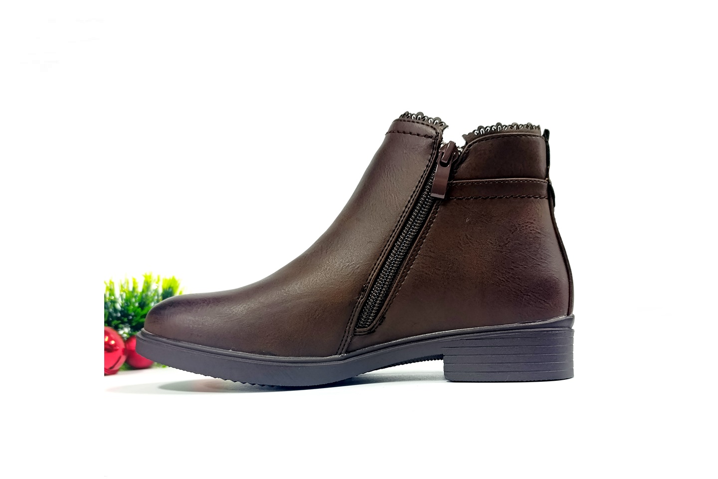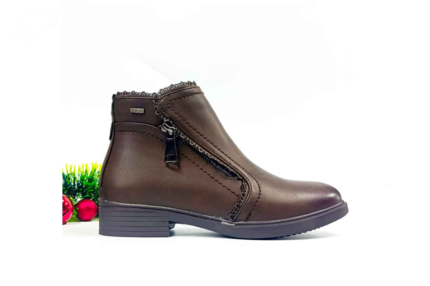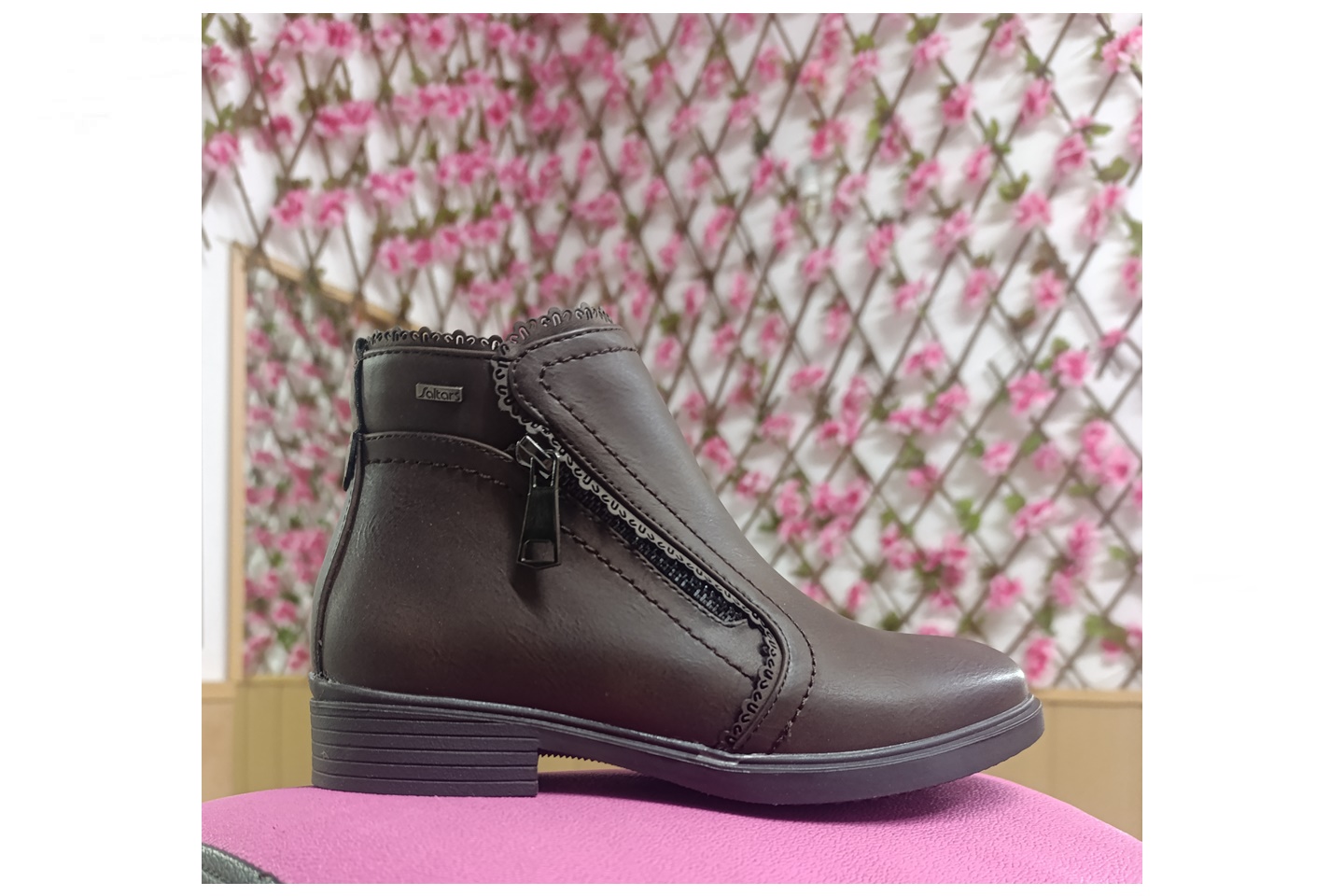 bota de senhora saltars de cano baixo e sola baixa com fecho castanha