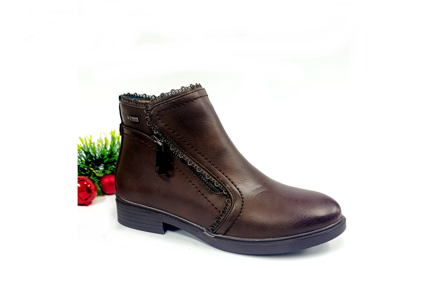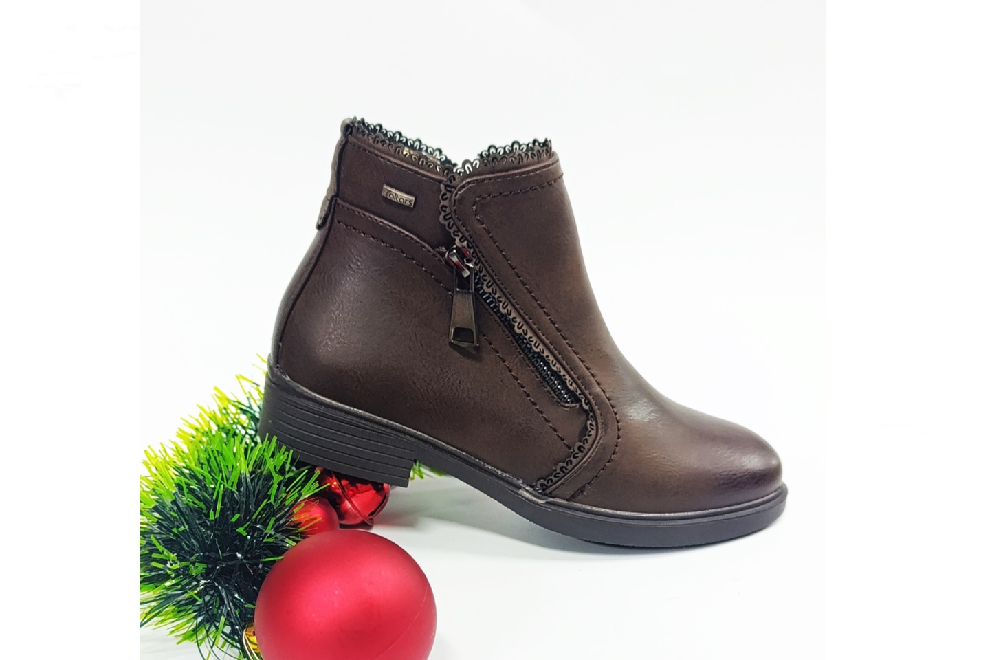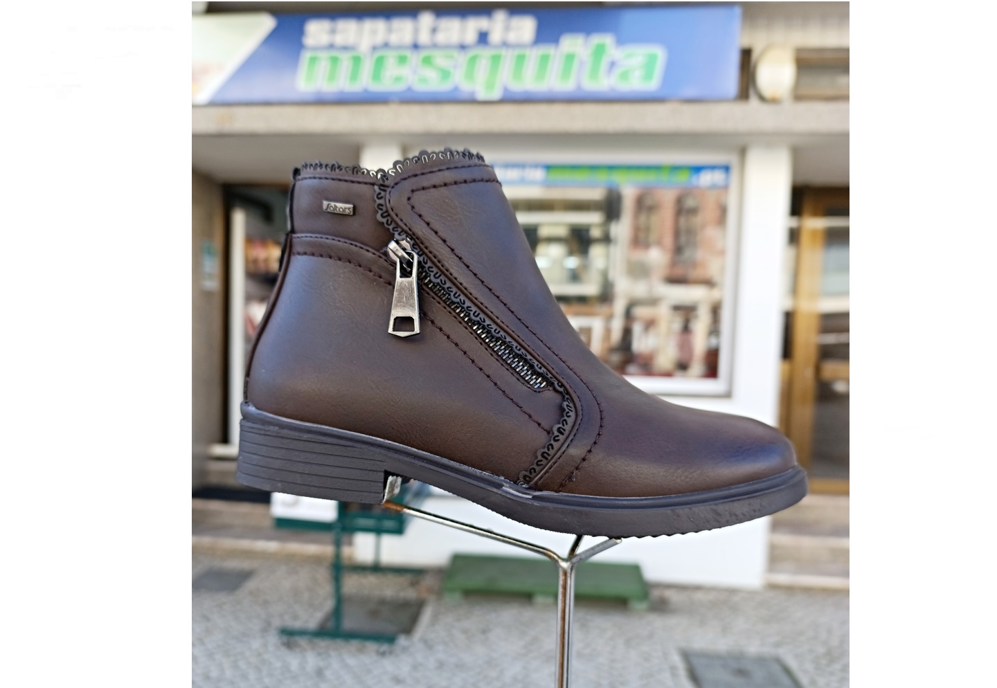 bota de senhora saltars de cano baixo e sola baixa com fecho castanha