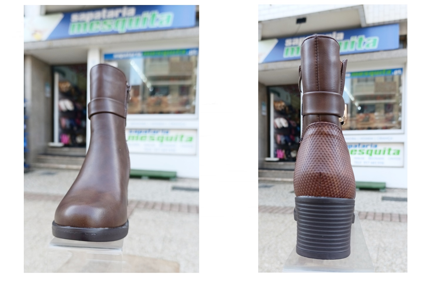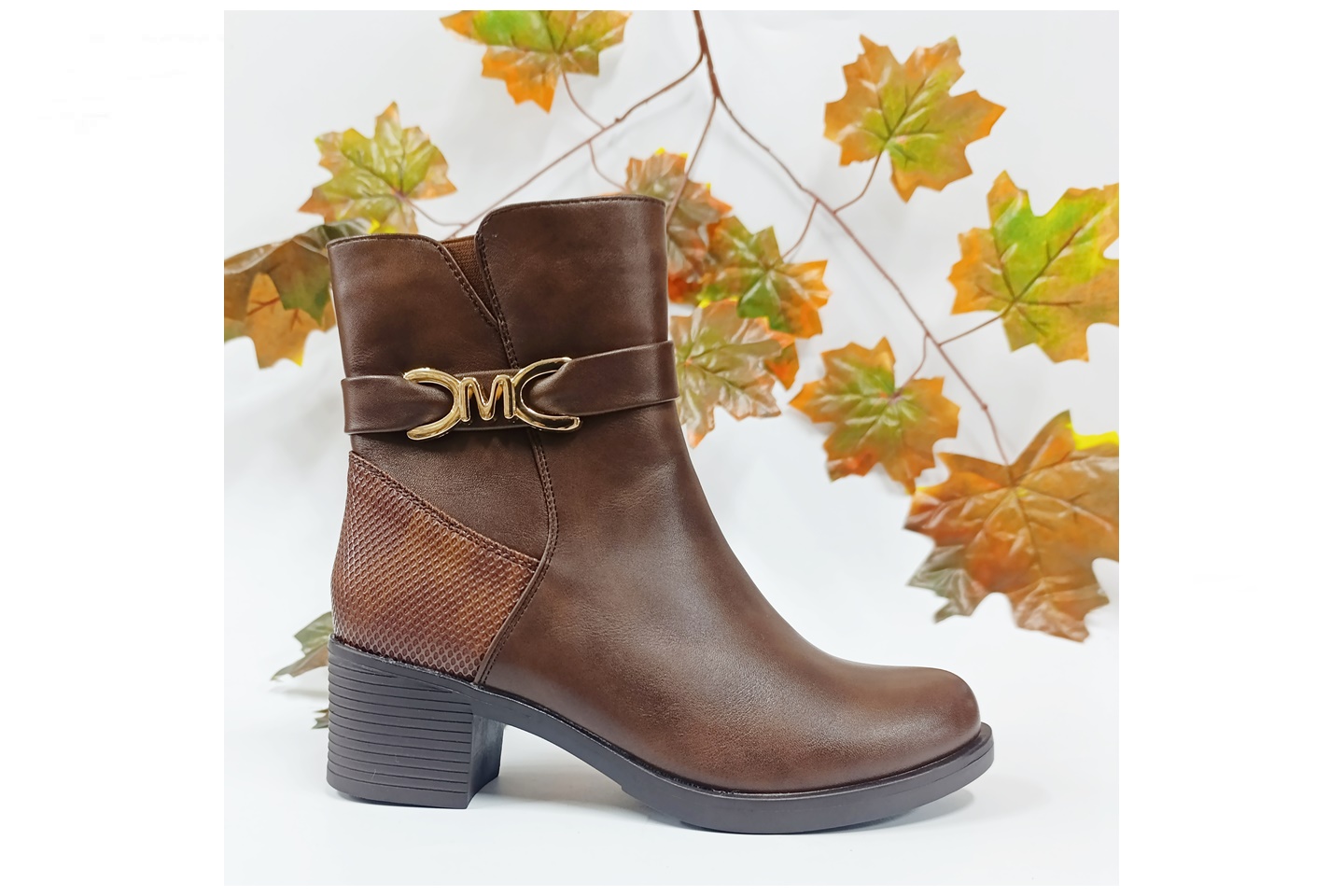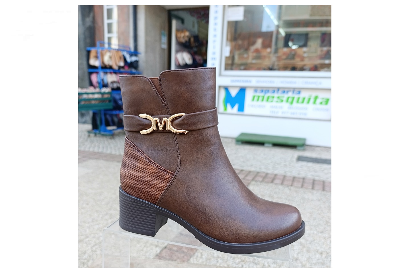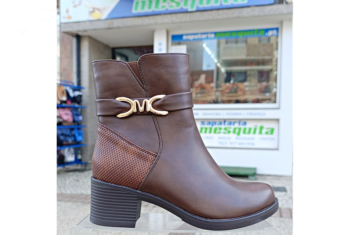 bota de senhora saltars de tacão baixo com fecho cor castanha(jml127)