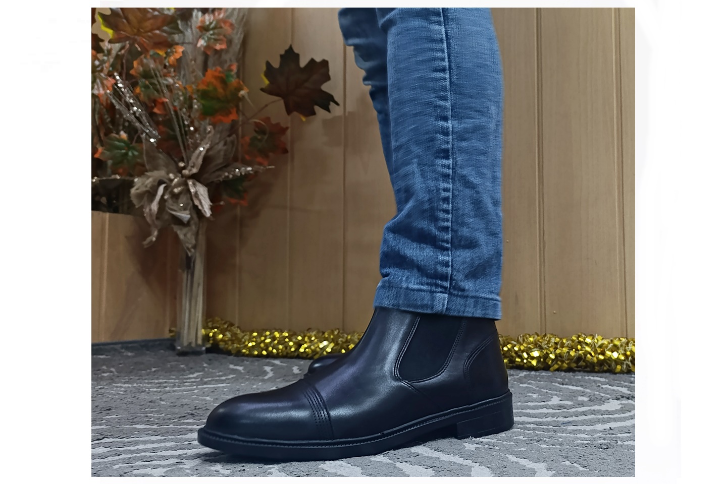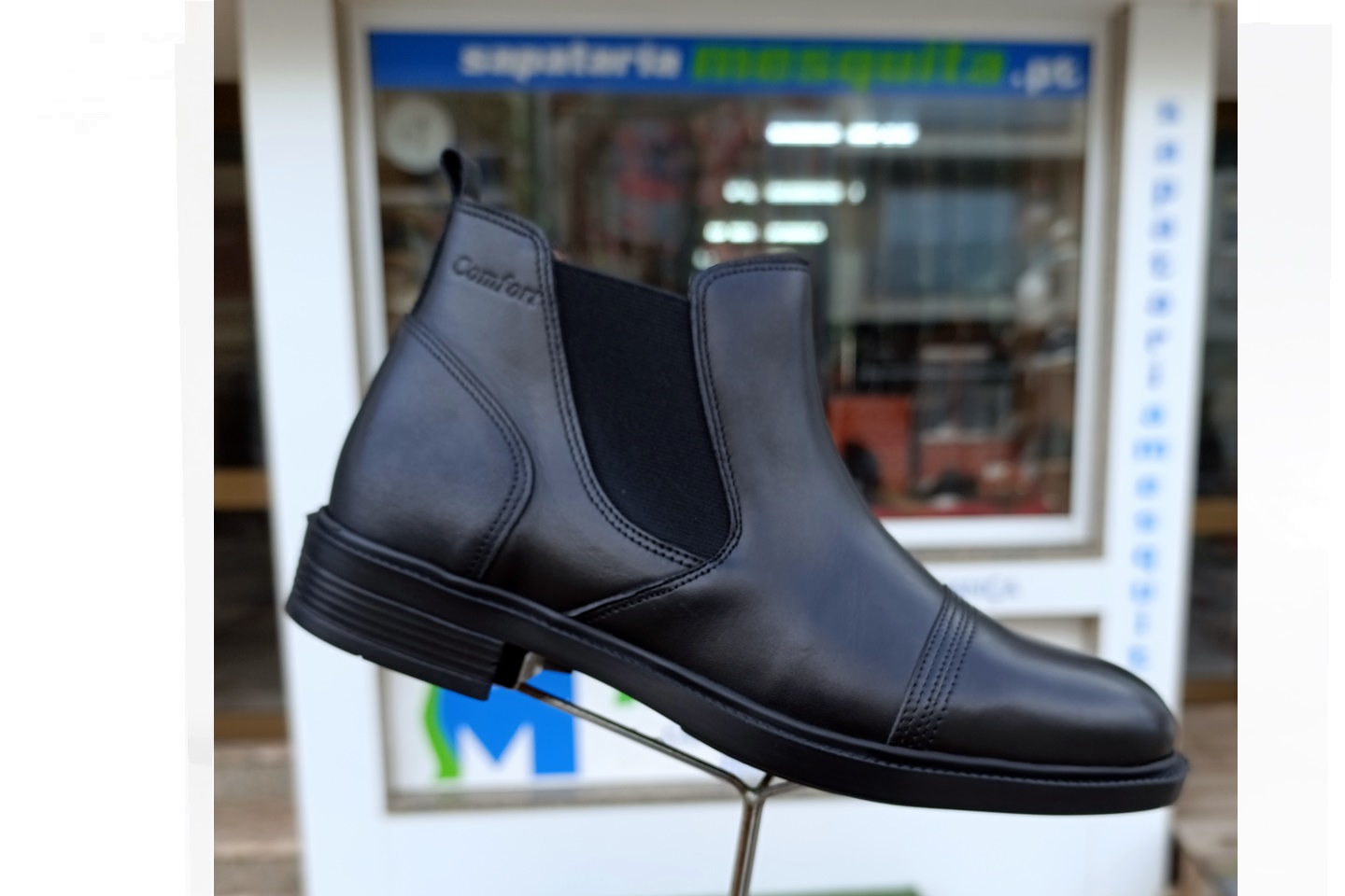 Botim para homem em pele com 2 elásticos cor preto