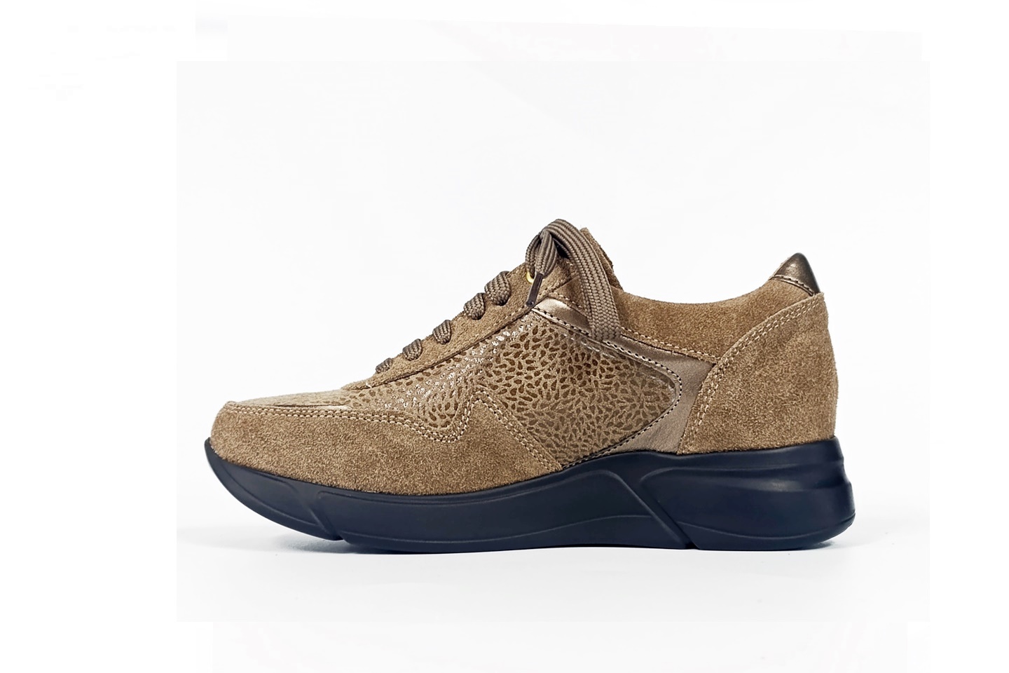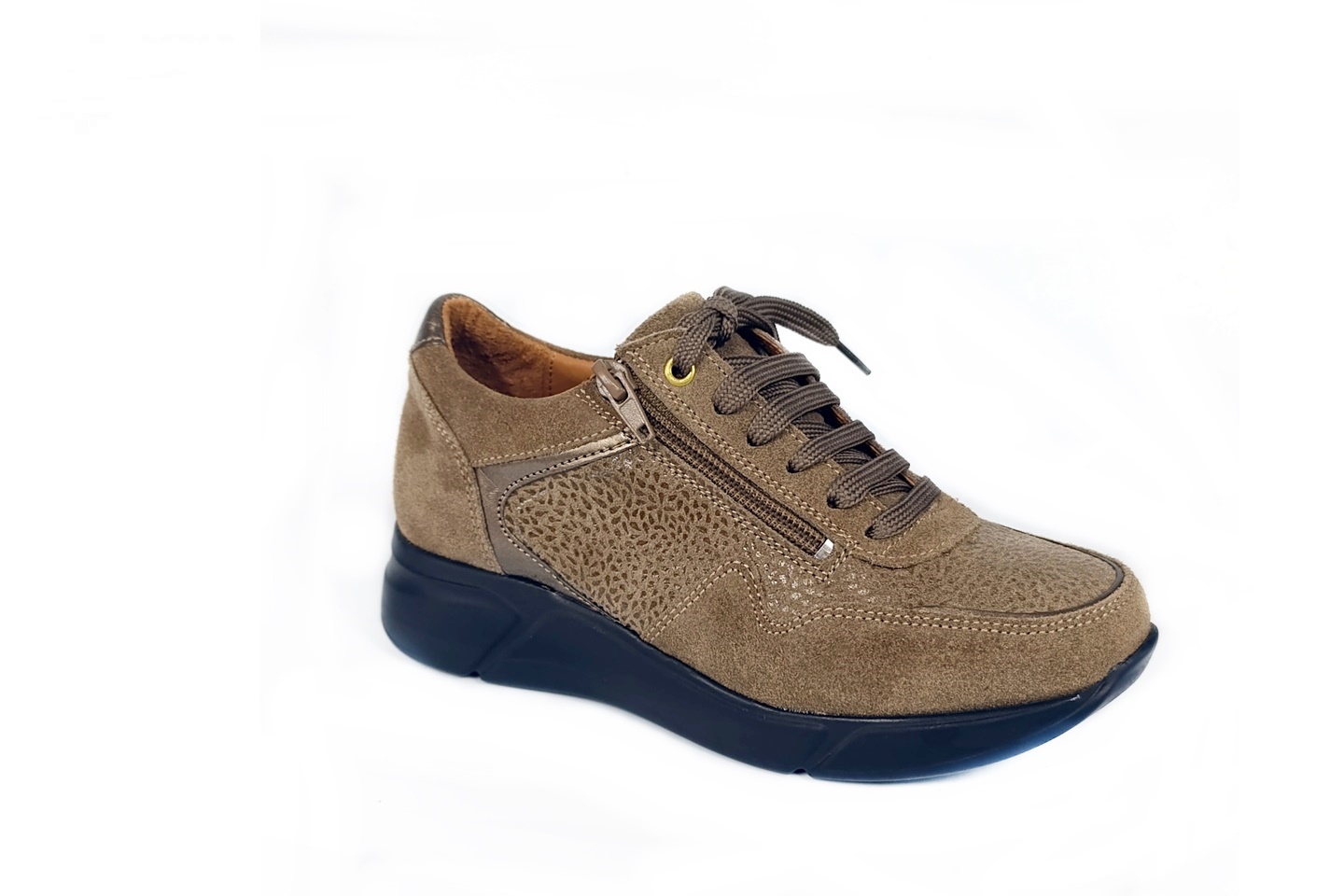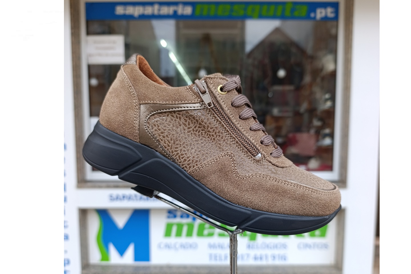 sapatilha de senhora com fecho e cordoes marca peluci cor cam.toupe