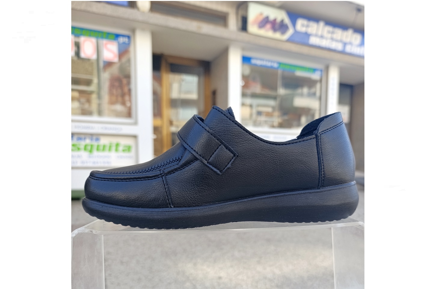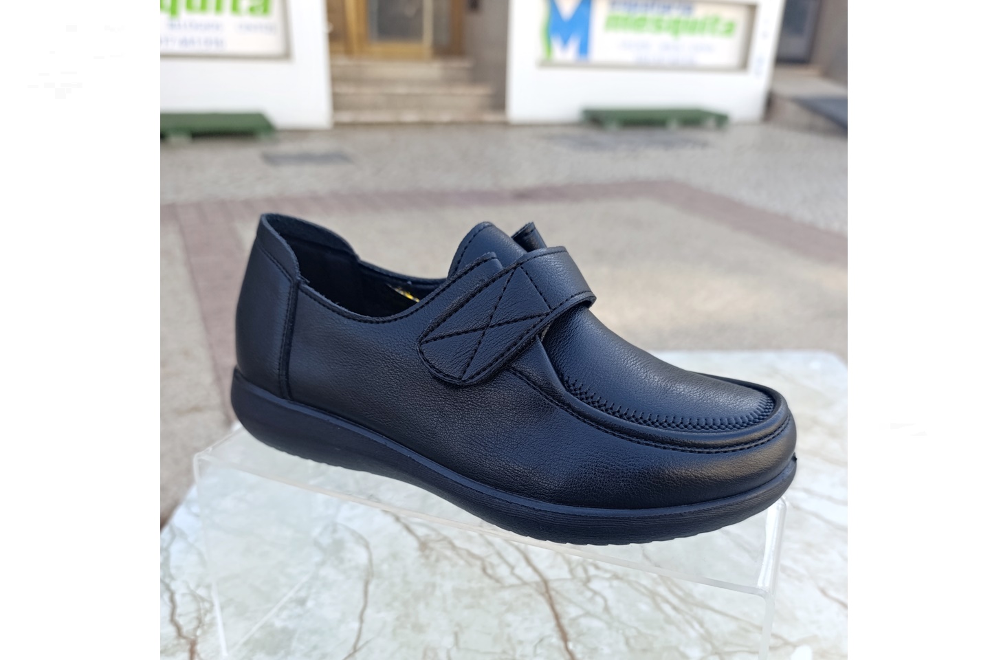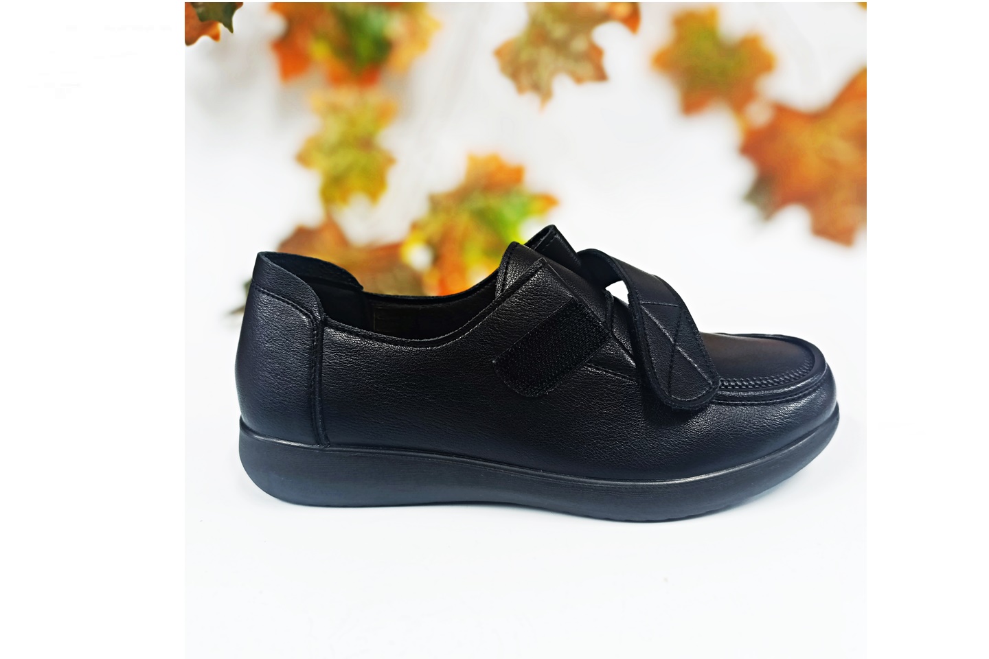 sapato para senhora de pala desdobrável com velcro cor preto