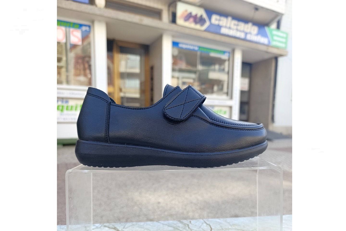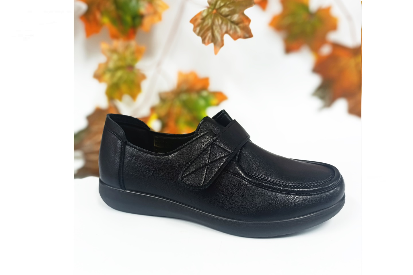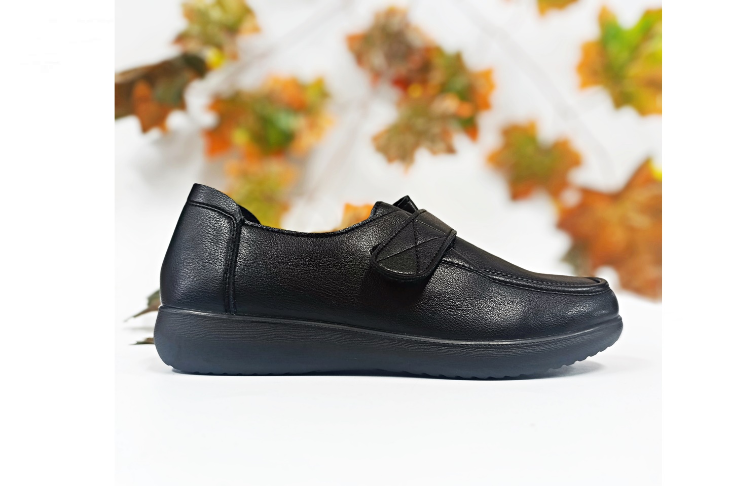 sapato para senhora de pala desdobrável com velcro cor preto